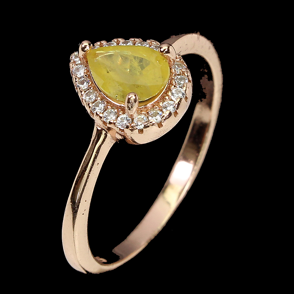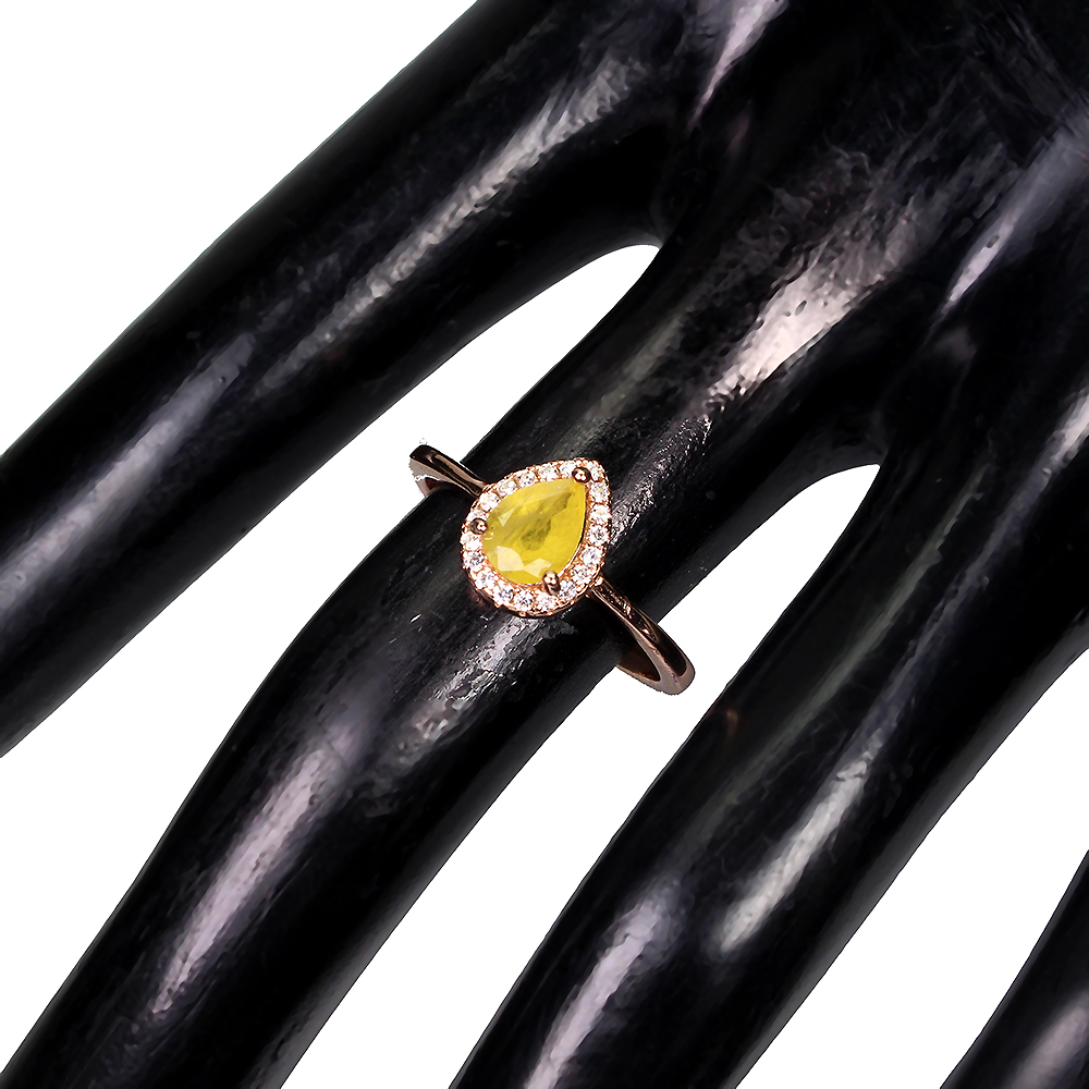 Pear Yellow Sapphire 7x5mm Cz 14K Rose Gold Plate 925 Sterling Silver Ring Sz 8