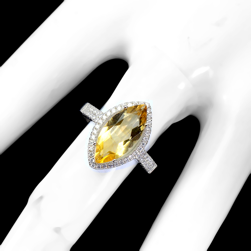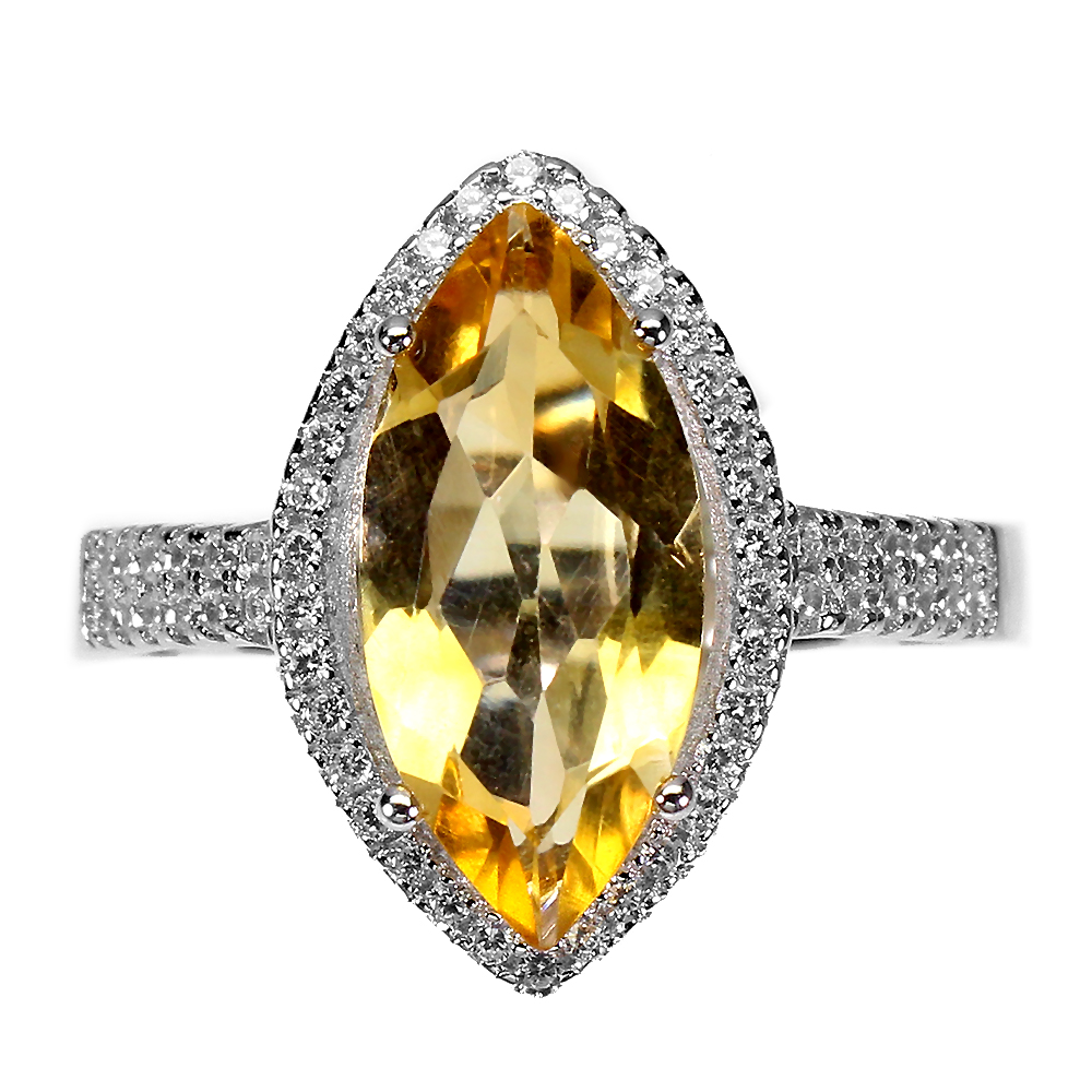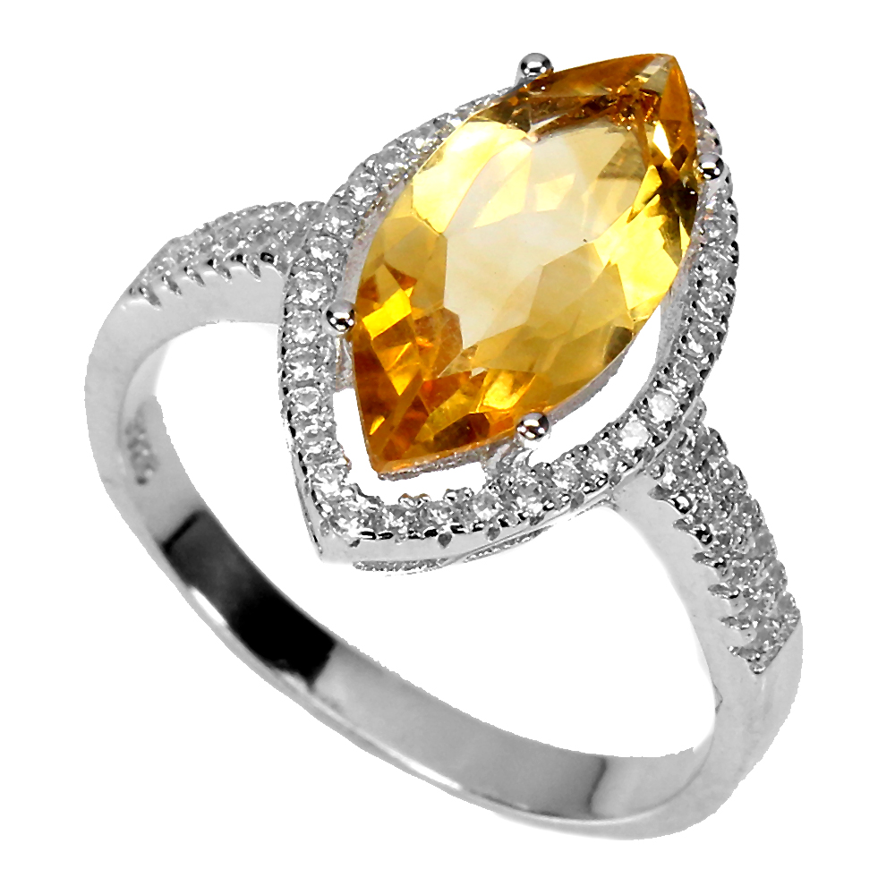 Marquise Citrine 14x7mm Cz 14K White Gold Plate 925 Sterling Silver Ring Size 8