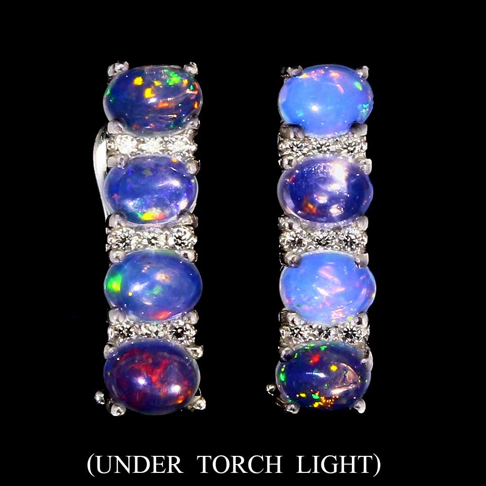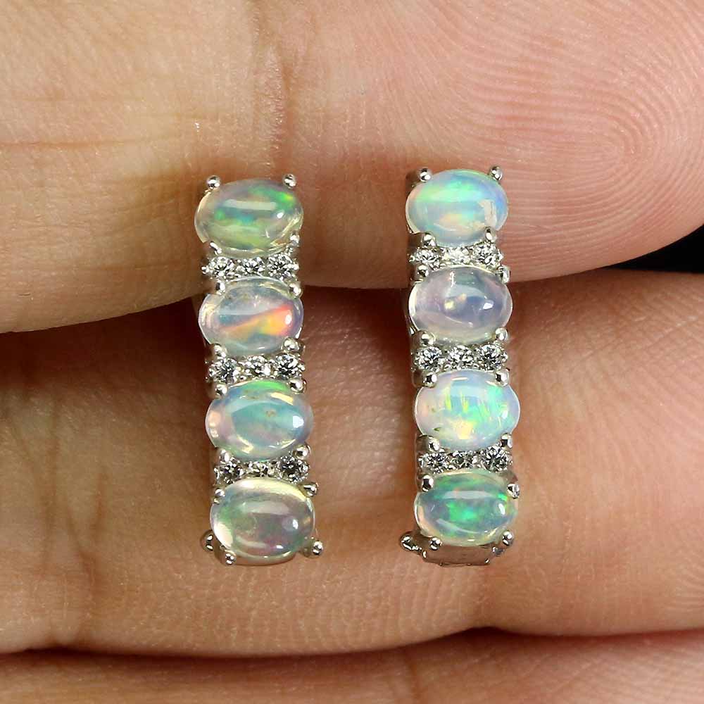 Unheated Oval Fire Opal Rainbow Full Fash 4x3mm 925 Sterling Silver Earrings
