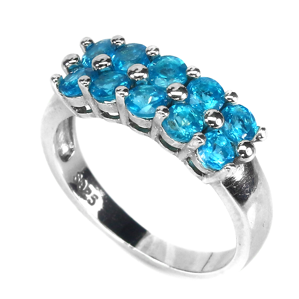Unheated Round Blue Apatite 3mm 14K White Gold Plate 925 Sterling Silver Ring