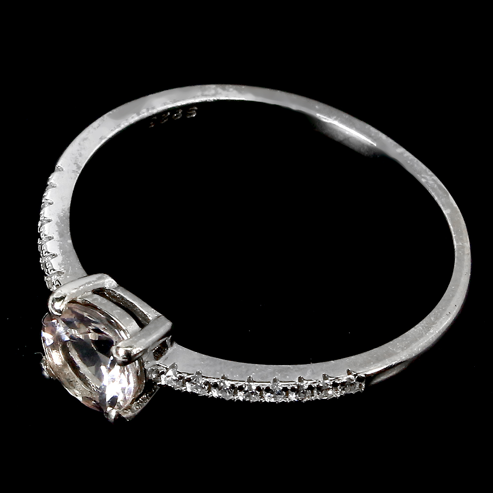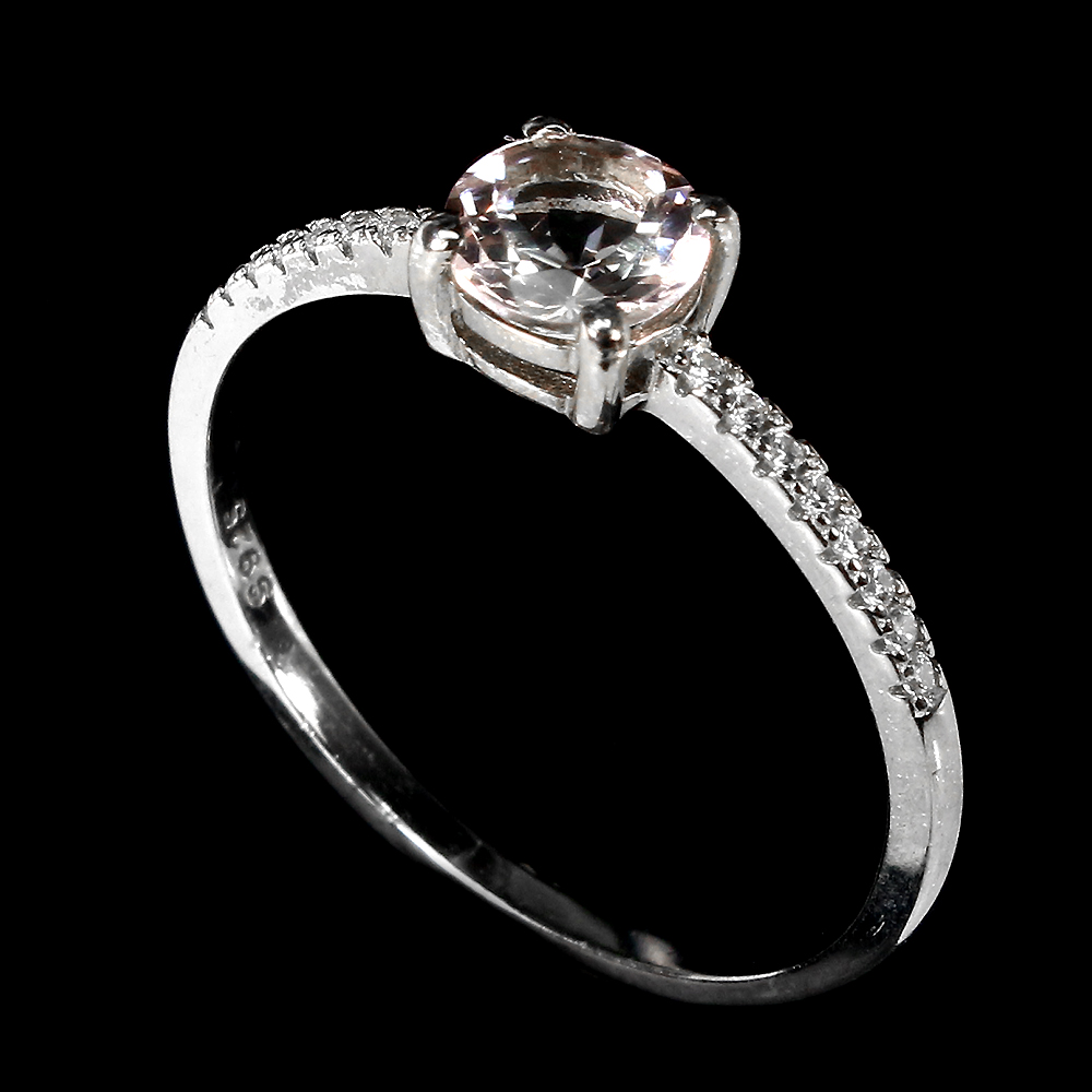 Unheated Round Morganite 6mm Cz 14K White Gold Plate 925 Sterling Silver Ring