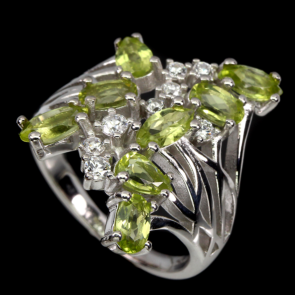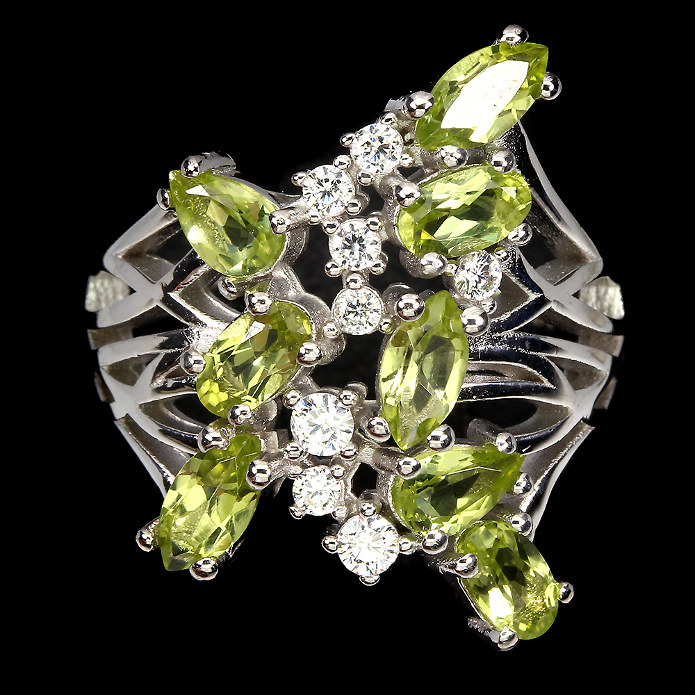 Unheated Marquise Peridot 6x3mm Cz White Gold Plate 925 Sterling Silver Ring