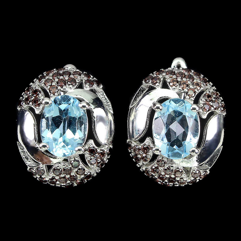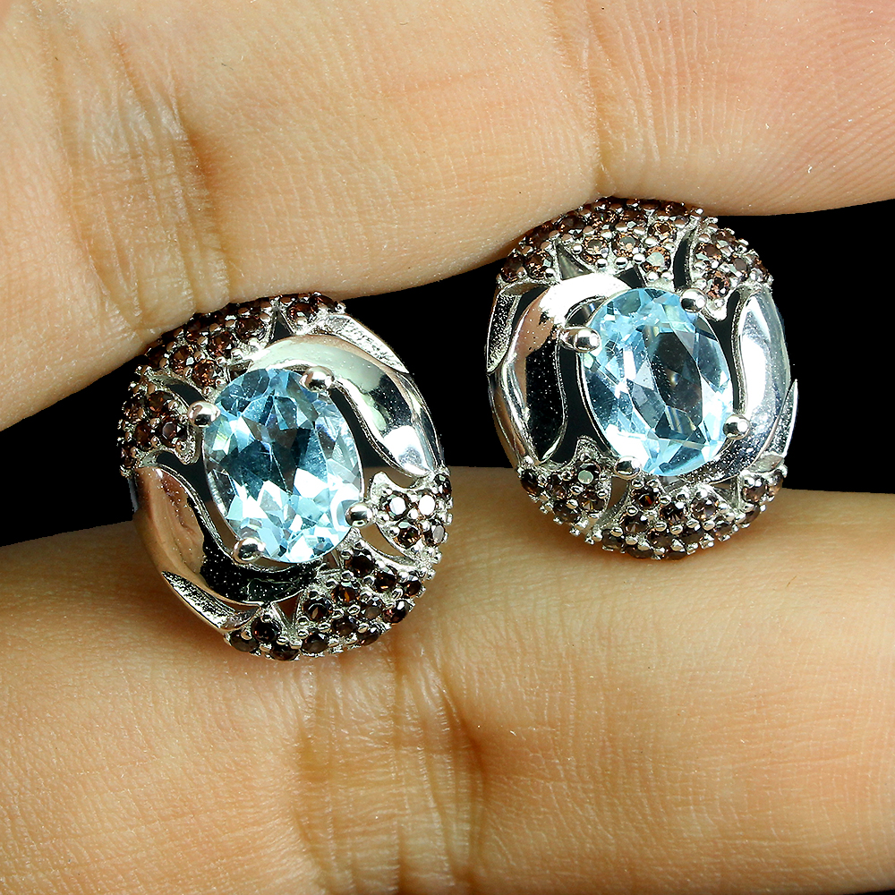 Oval Sky Blue Topaz 8x6mm Cz 14K White Gold Plate 925 Sterling Silver Earrings