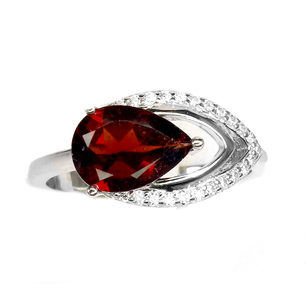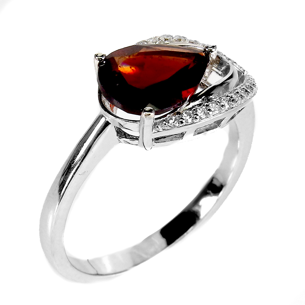 Unheated Pear Mozambique Garnet 10x7mm White Cz 925 Sterling Silver Ring