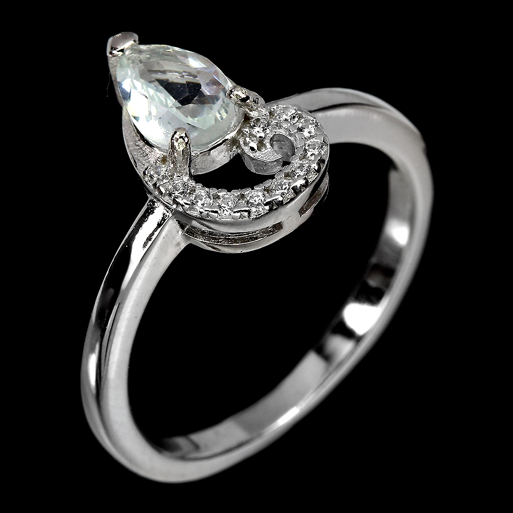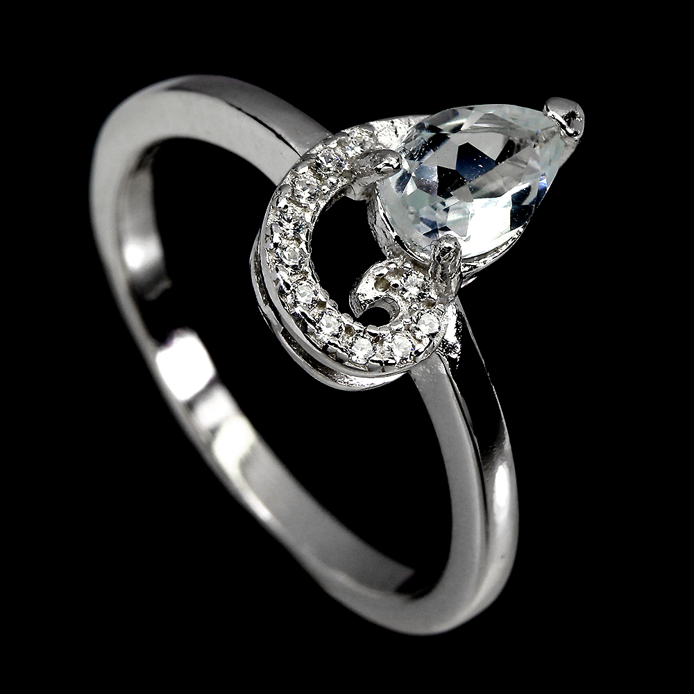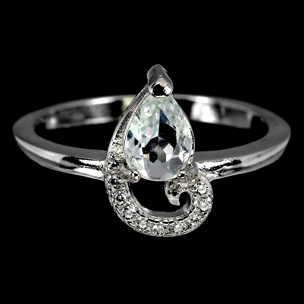 Unheated Pear Aquamarine 7x5mm Cz White Gold Plate 925 Sterling Silver Ring 8