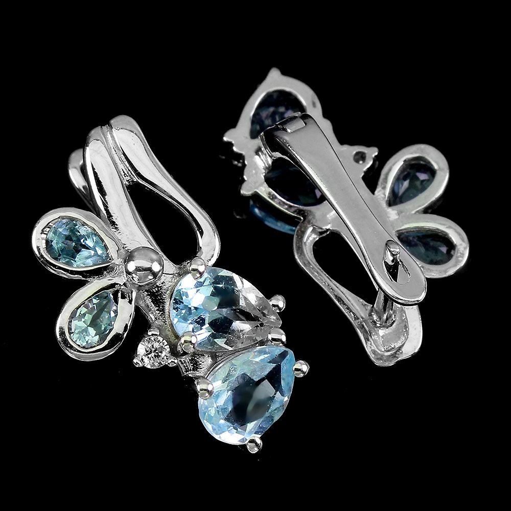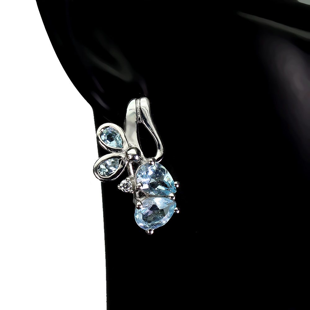 Pear Sky Blue Topaz 7x5mm Cz White Gold Plate 925 Sterling Silver Bee Earrings