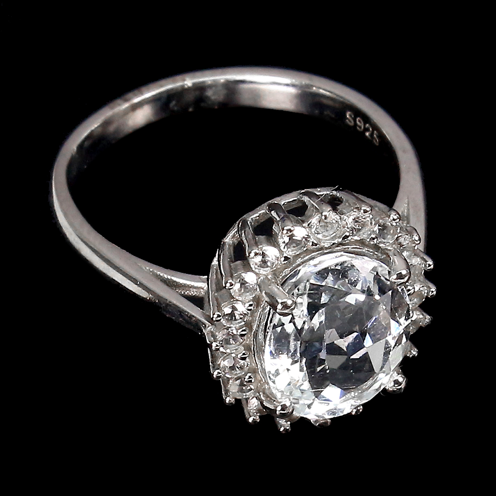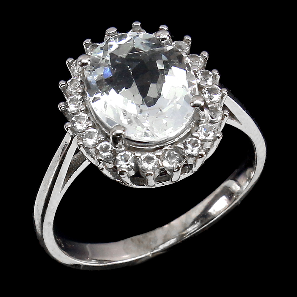 Unheated Oval Aquamarine 10x8mm White Topaz 925 Sterling Silver Ring Size 6