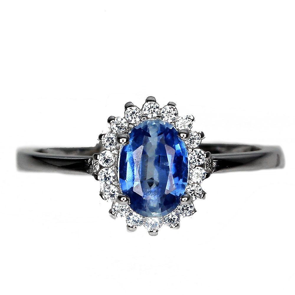 Unheated Oval Kyanite 7x5mm Cz 14K White Gold Plate 925 Sterling Silver Ring 6.5