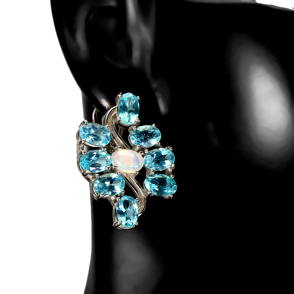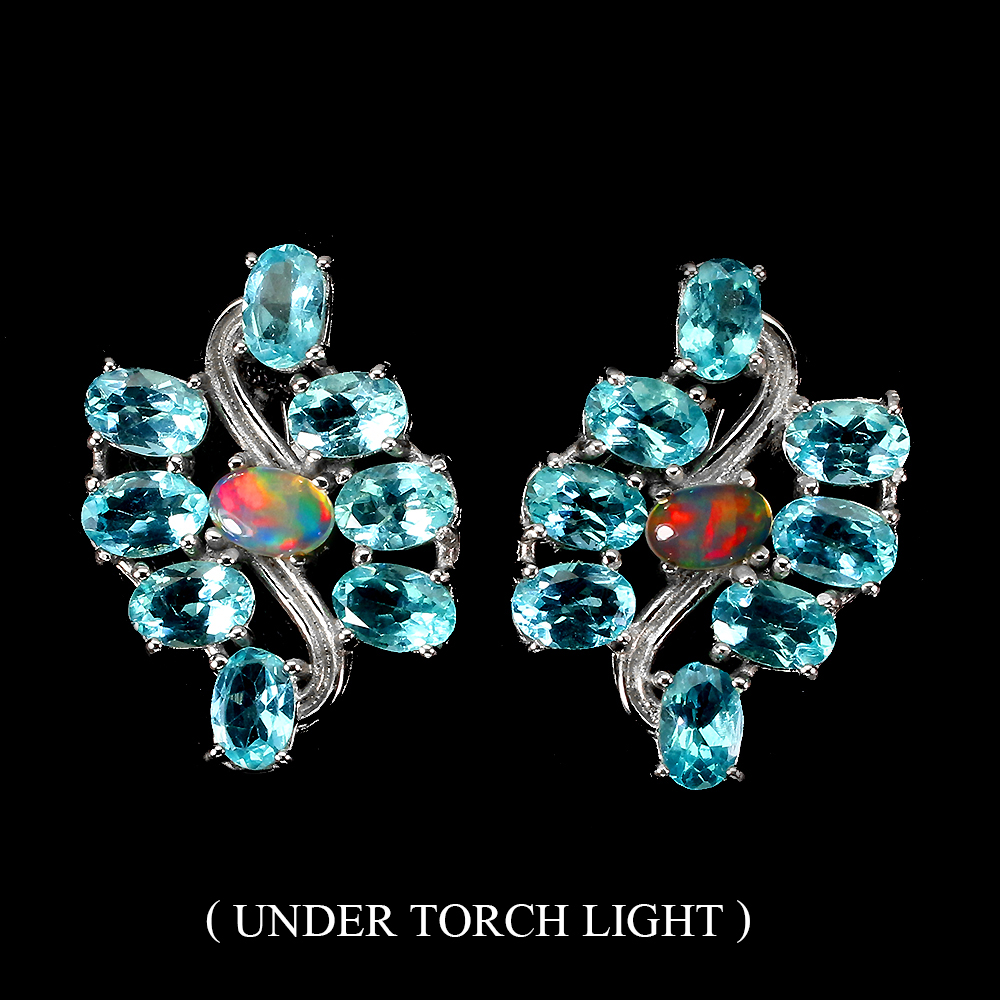 Unheated Oval Apatite Fire Opal White Gold Plate 925 Sterling Silver Earrings