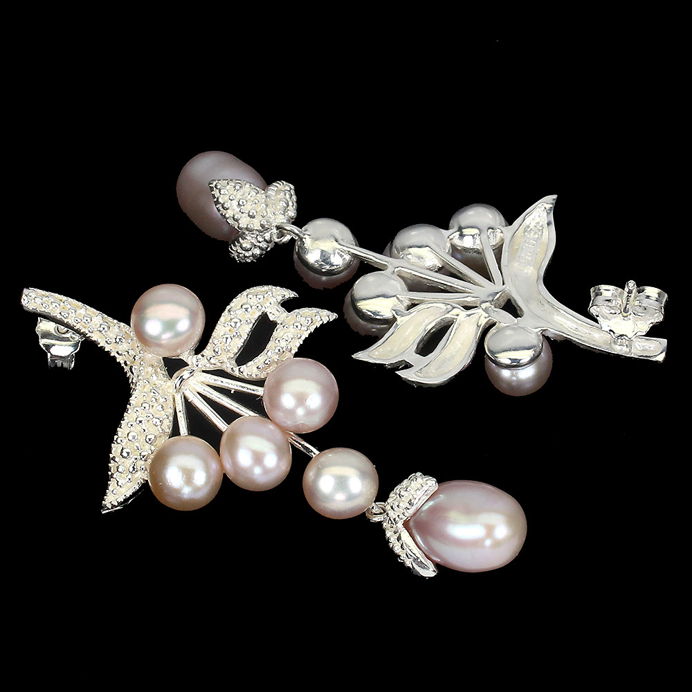 Baroque Creamy Pink Pearl 9x8mm 925 Sterling Silver Earrings