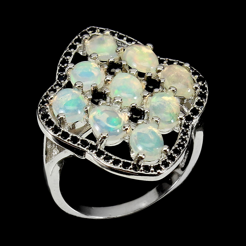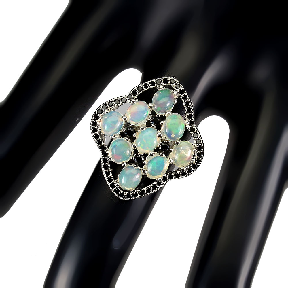 Unheated Oval Fire Opal 5x4mm Black Spinel 925 Sterling Silver Ring Size 7