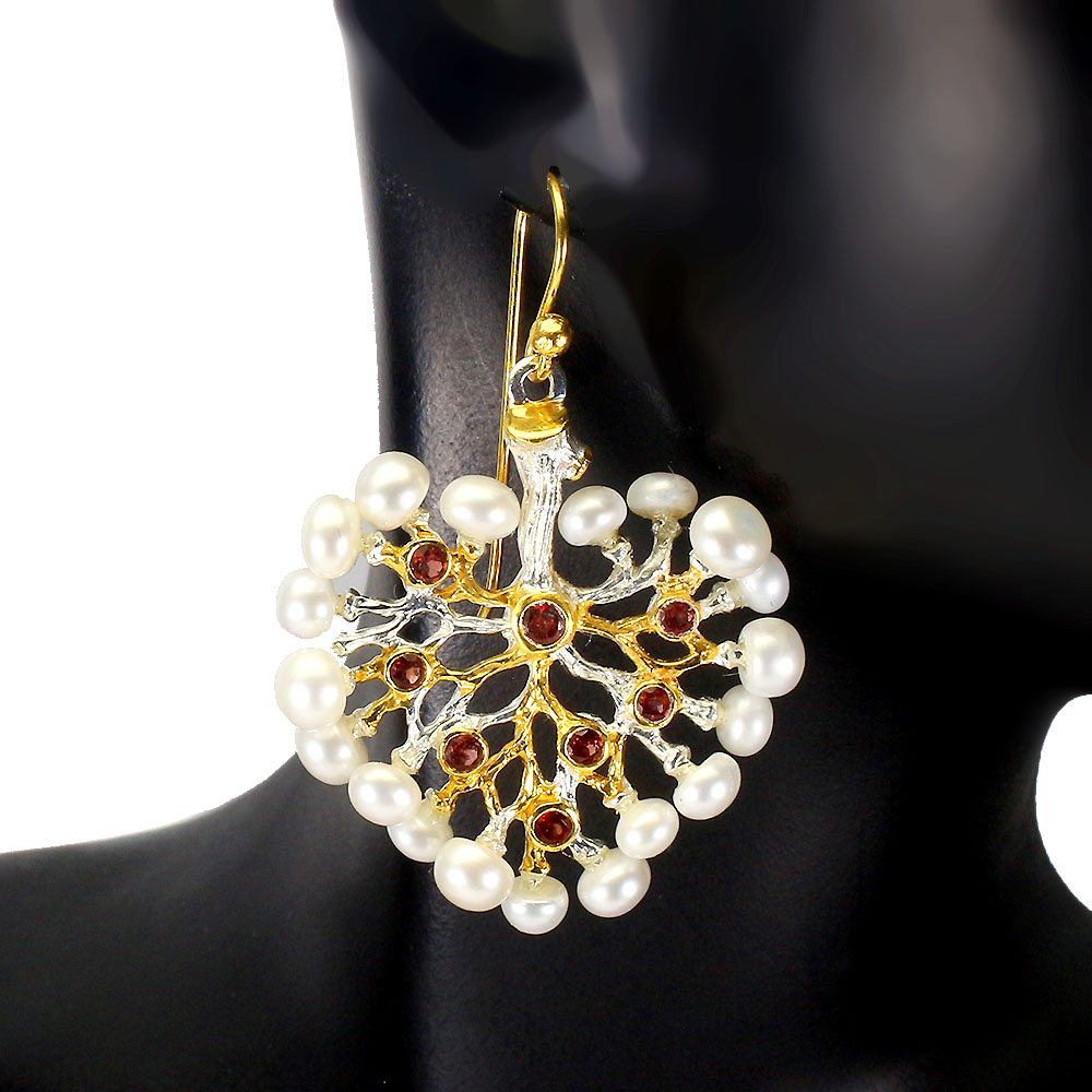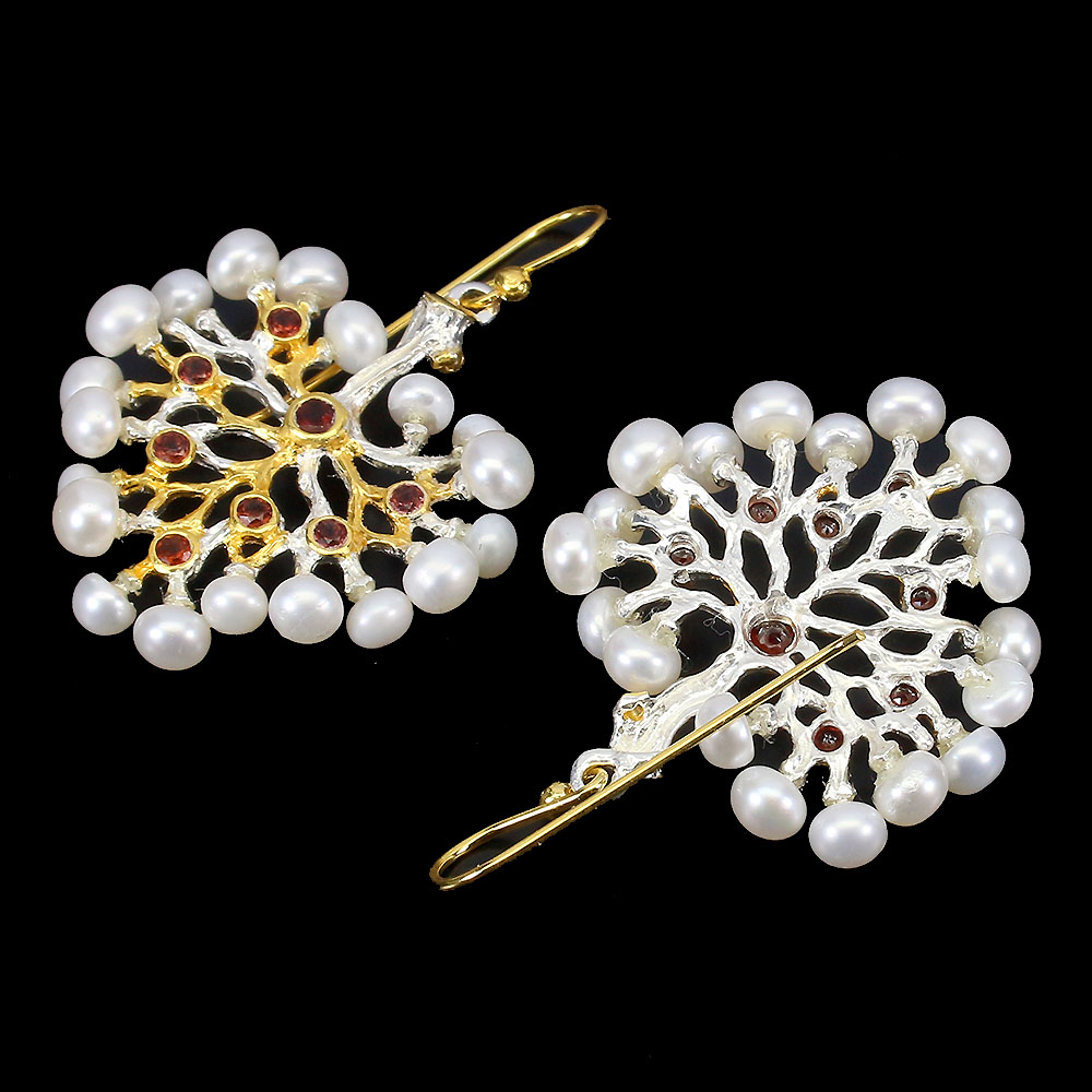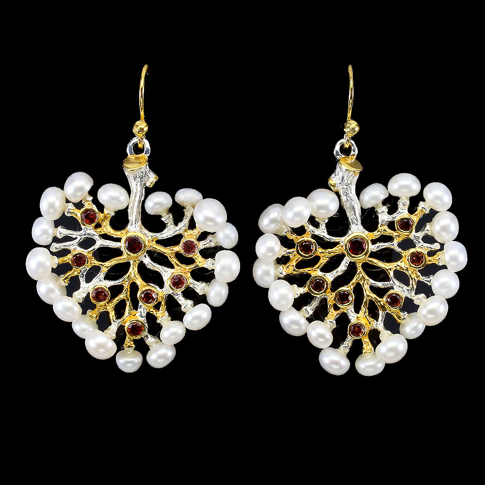 Baroque Creamy White Pearl 4x3mm Mozambique Garnet 925 Sterling Silver Earrings