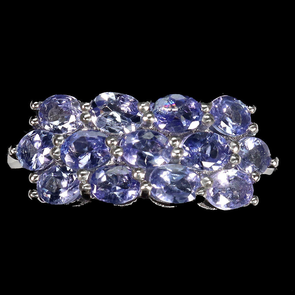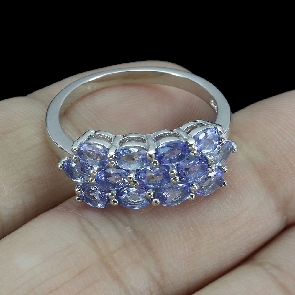 Unheated Oval Blue Tanzanite 4x3mm White Gold Plate 925 Sterling Silver Ring 9.5