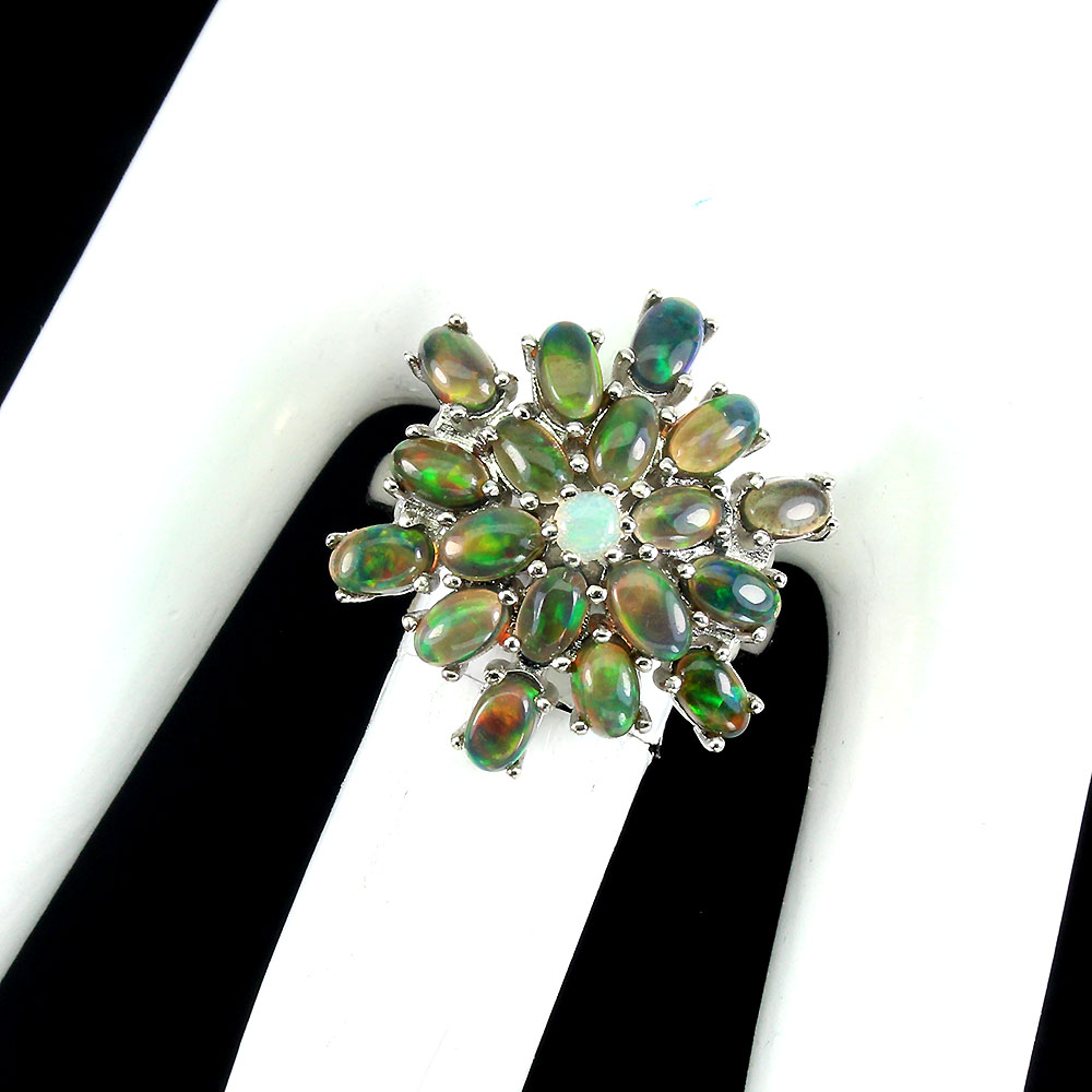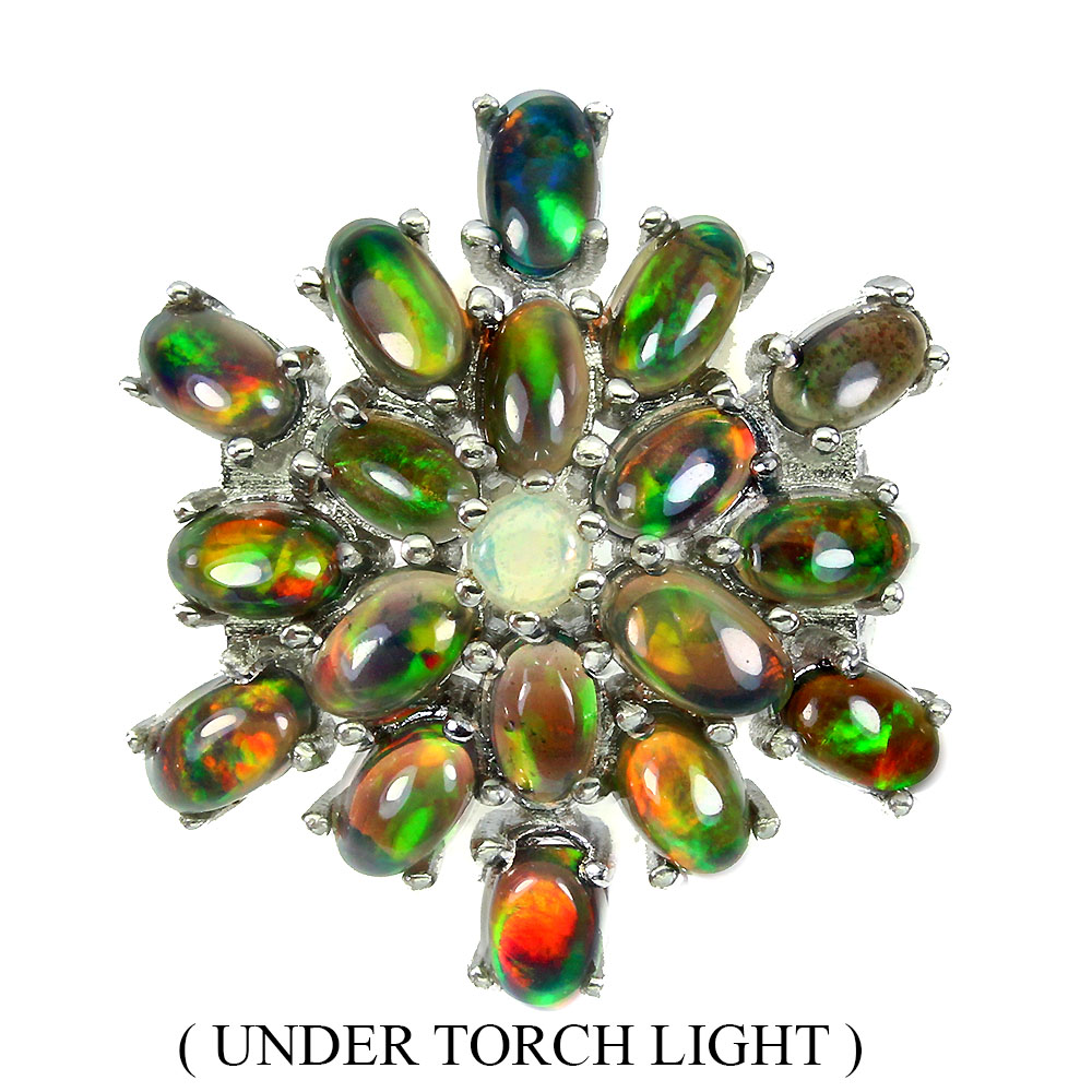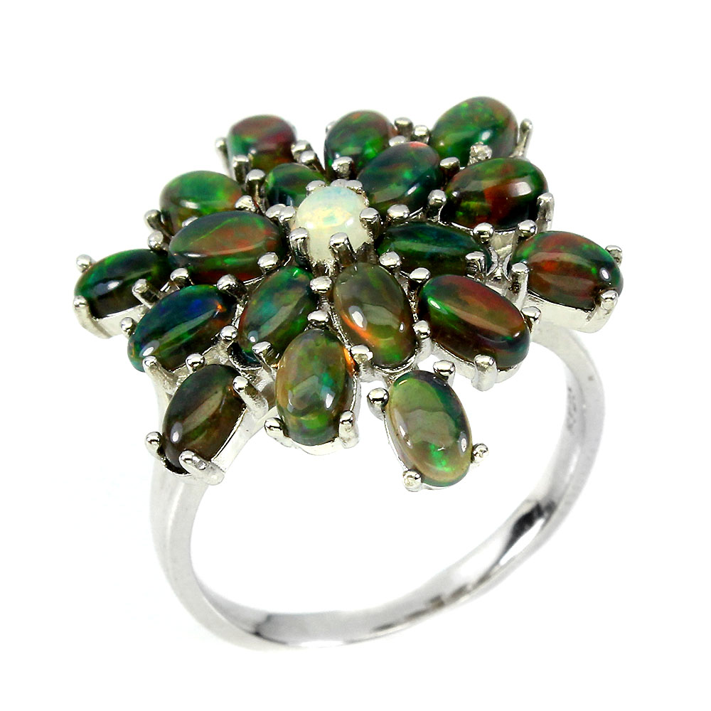 Clarity Enhanced Oval Black Opal 5x3mm Fire Opal 925 Sterling Silver Ring Size 9