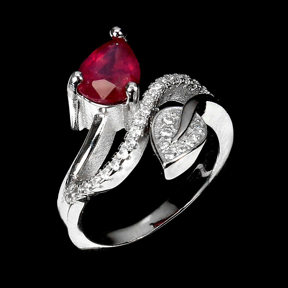 Heated Pear Red Ruby 8x6mm Simulated Cz 925 Sterling Silver Ring Size 5.5