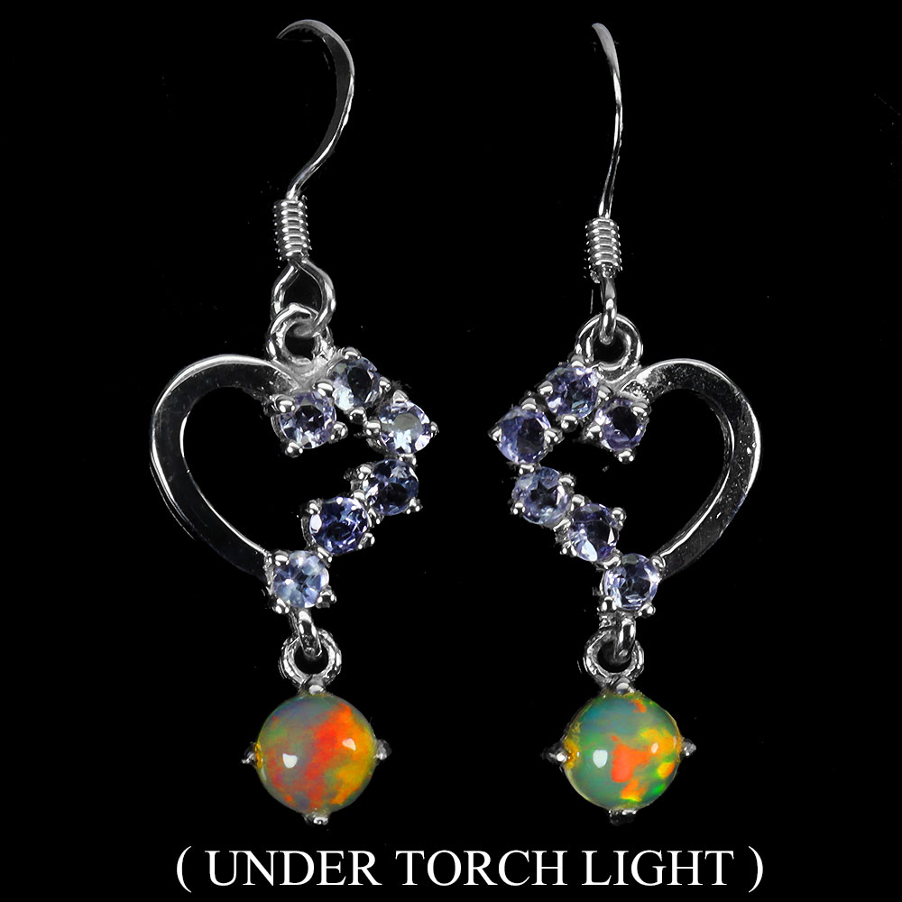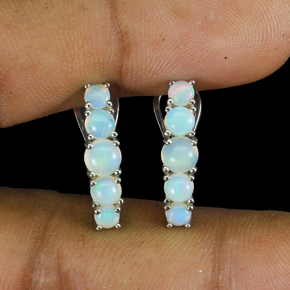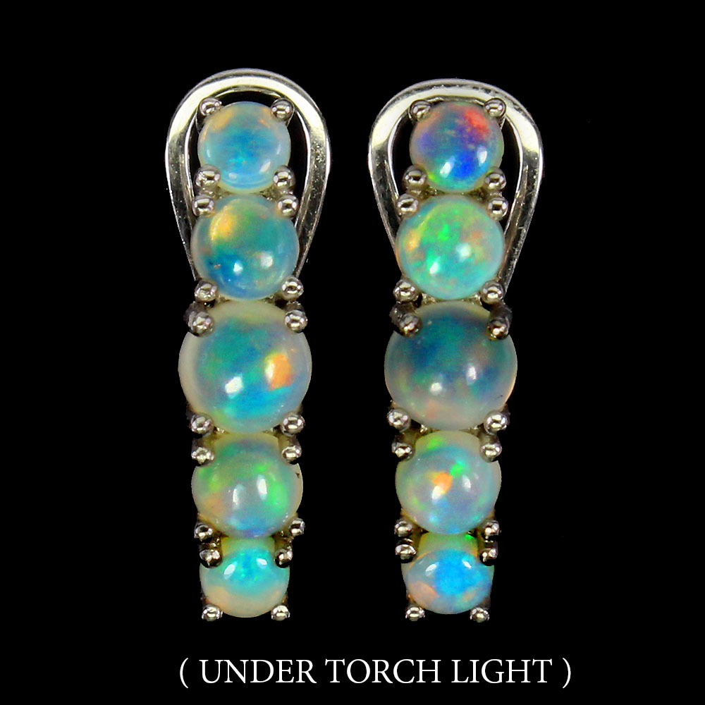 Unheated Round Fire Opal Hot Rainbow Luster 5mm 925 Sterling Silver Earrings