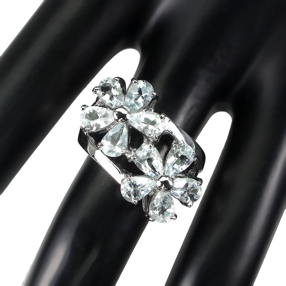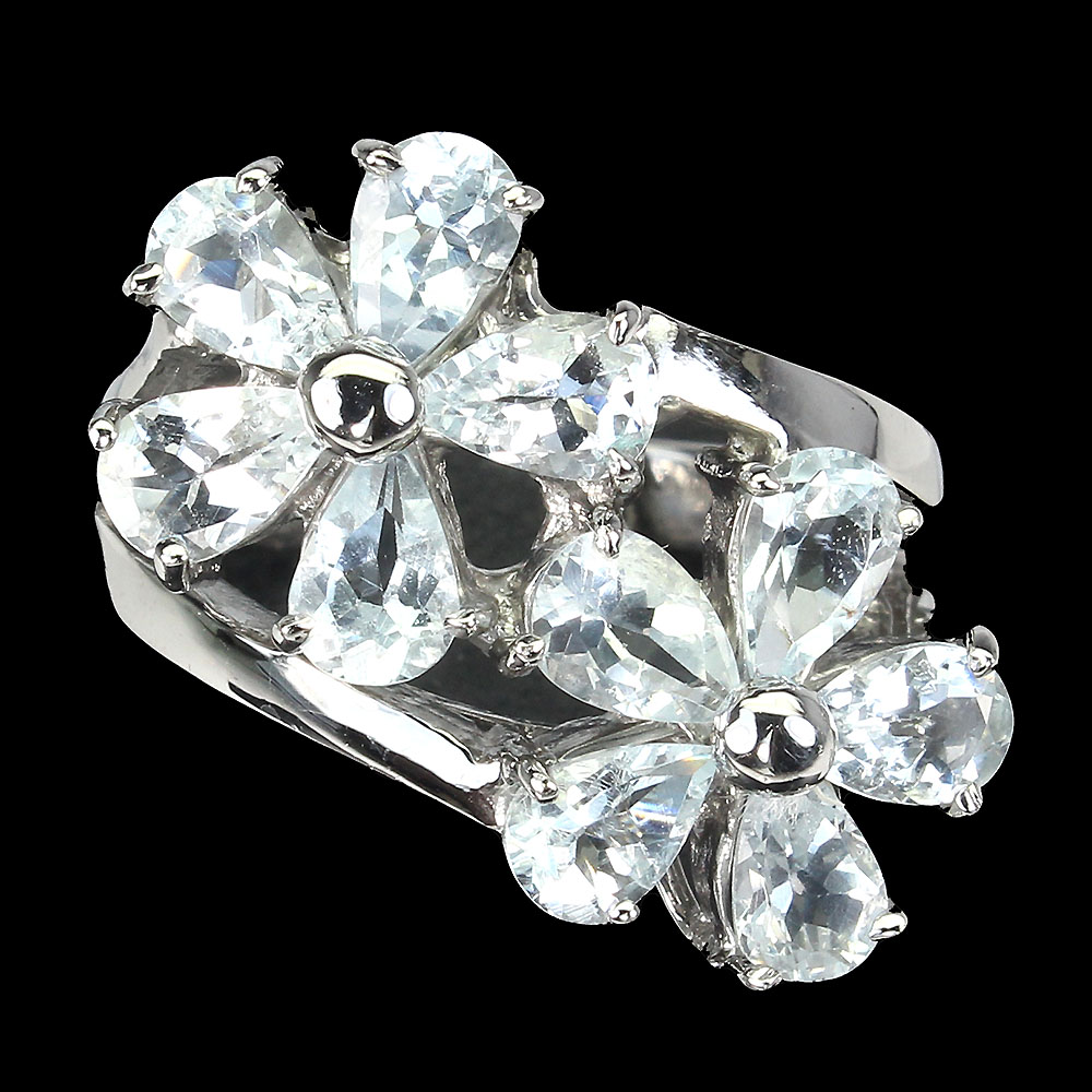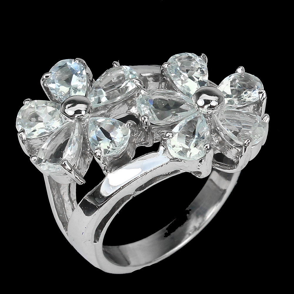 Unheated Pear Aquamarine 6x4mm 14K White Gold Plate 925 Sterling Silver Ring 7