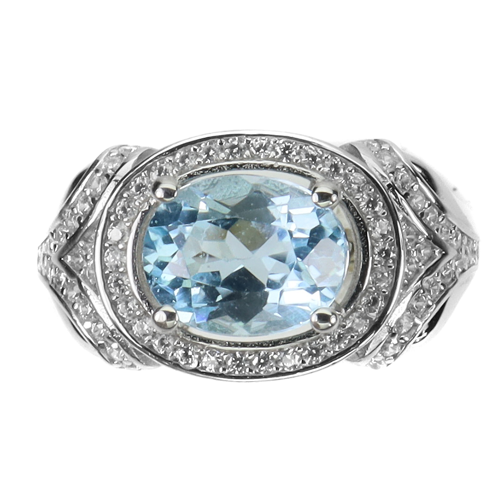 Irradiated Oval Sky Blue Topaz 9x7mm Simulated Cz 925 Sterling Silver Ring Sz 8