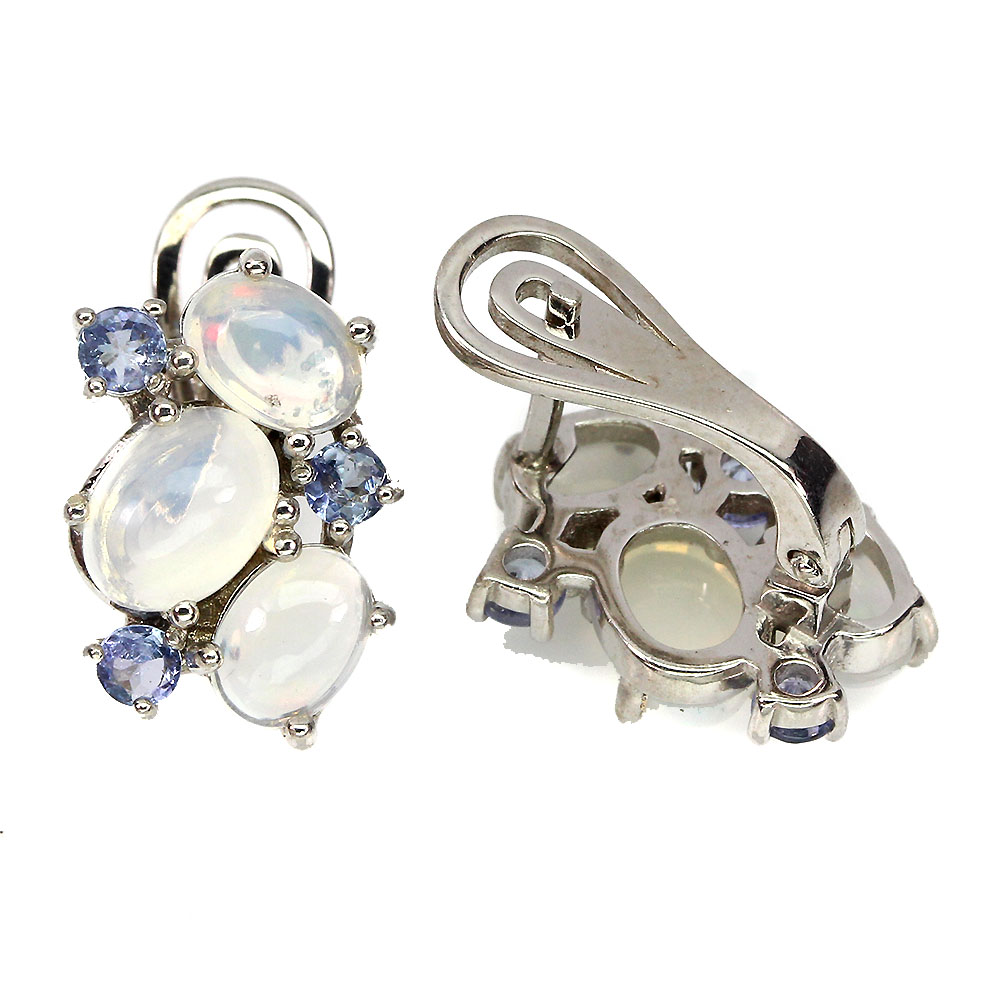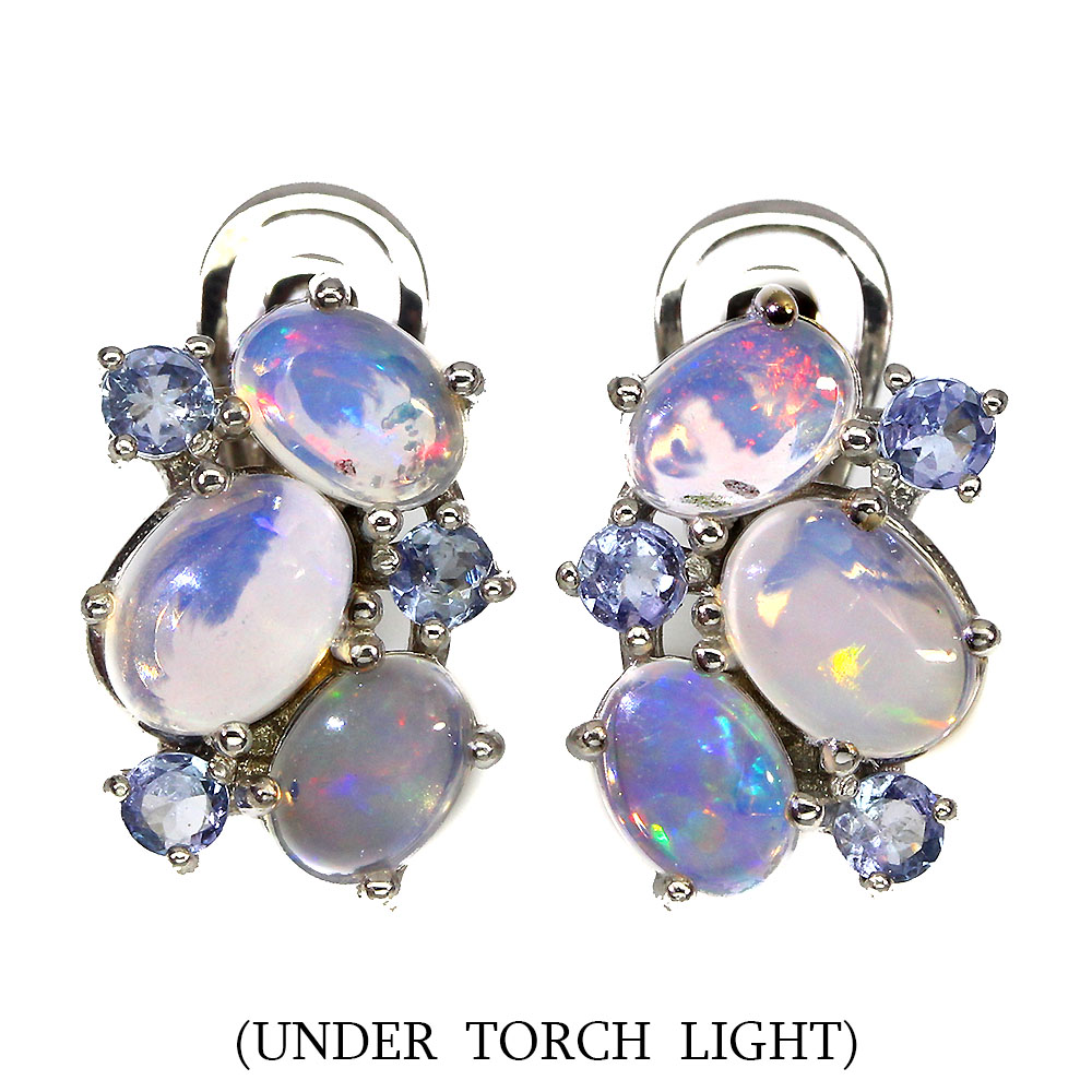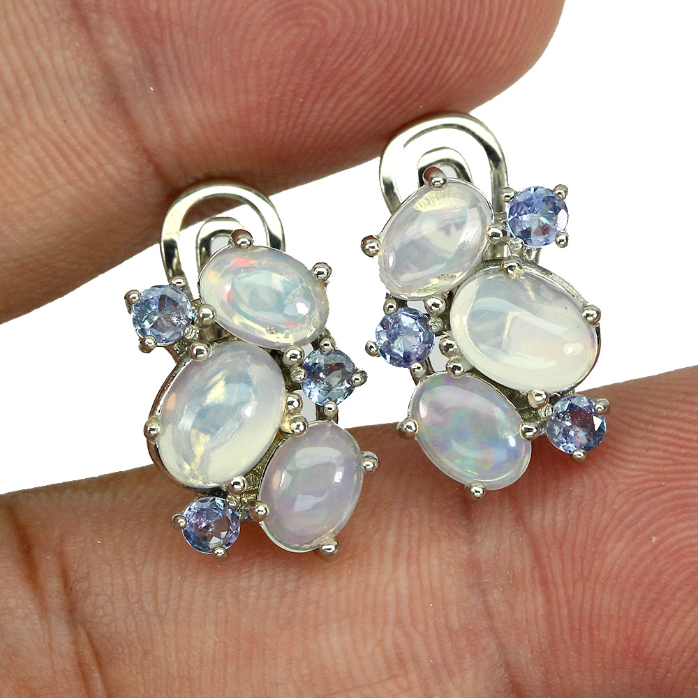 Unheated Oval Fire Opal Tanzanite 8x6mm 925 Sterling Silver Earrings