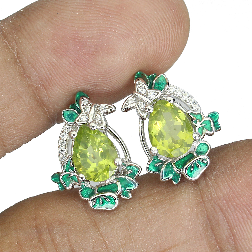 * STONE 8.0 X 6.0 MM. * CZ 1.0 MM. * FACE EARRINGS 17.0 X 13.0 MM.