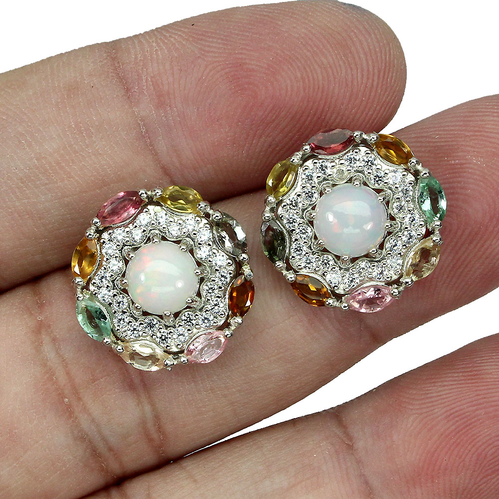 * STONE 5.0 X 2.5 TO 7.0 MM. * CZ 1.5 MM. * FACE EARRINGS 18.0 X 18.0 MM.