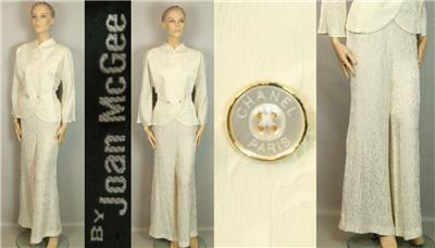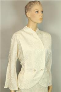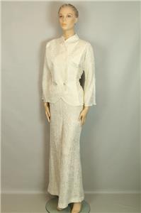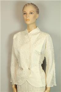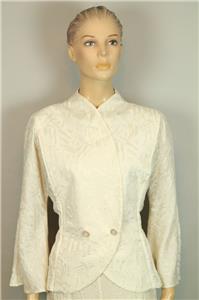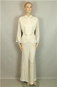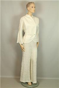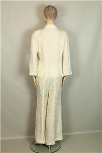 ivory cream color pure silk set includes jacket blazer and matching wide leg pants slack.