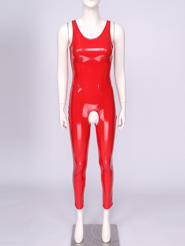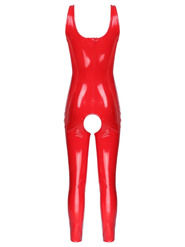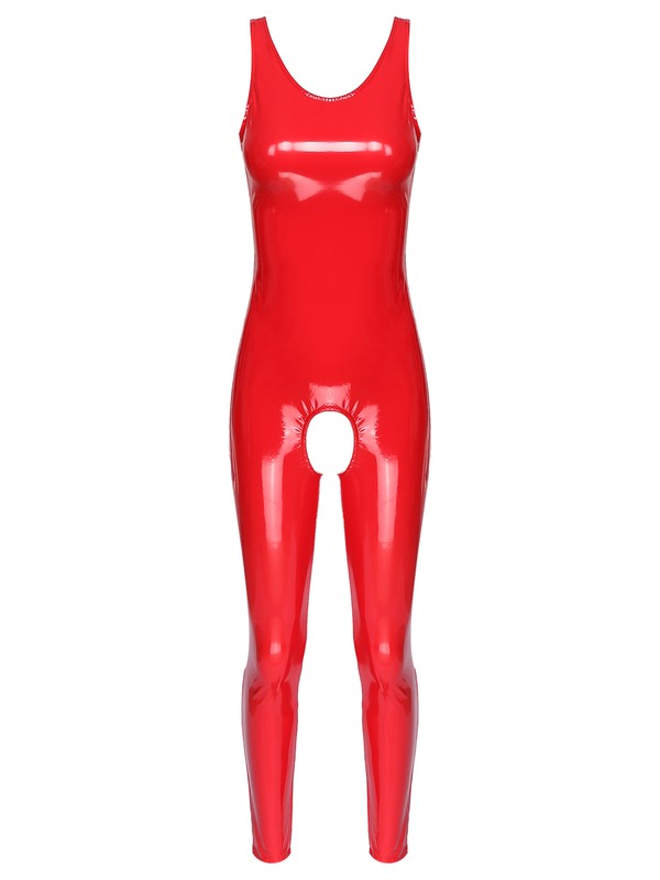 Women’s one-piece leotard jumpsuit catsuit clubwear, wet look appearance, slim fit.