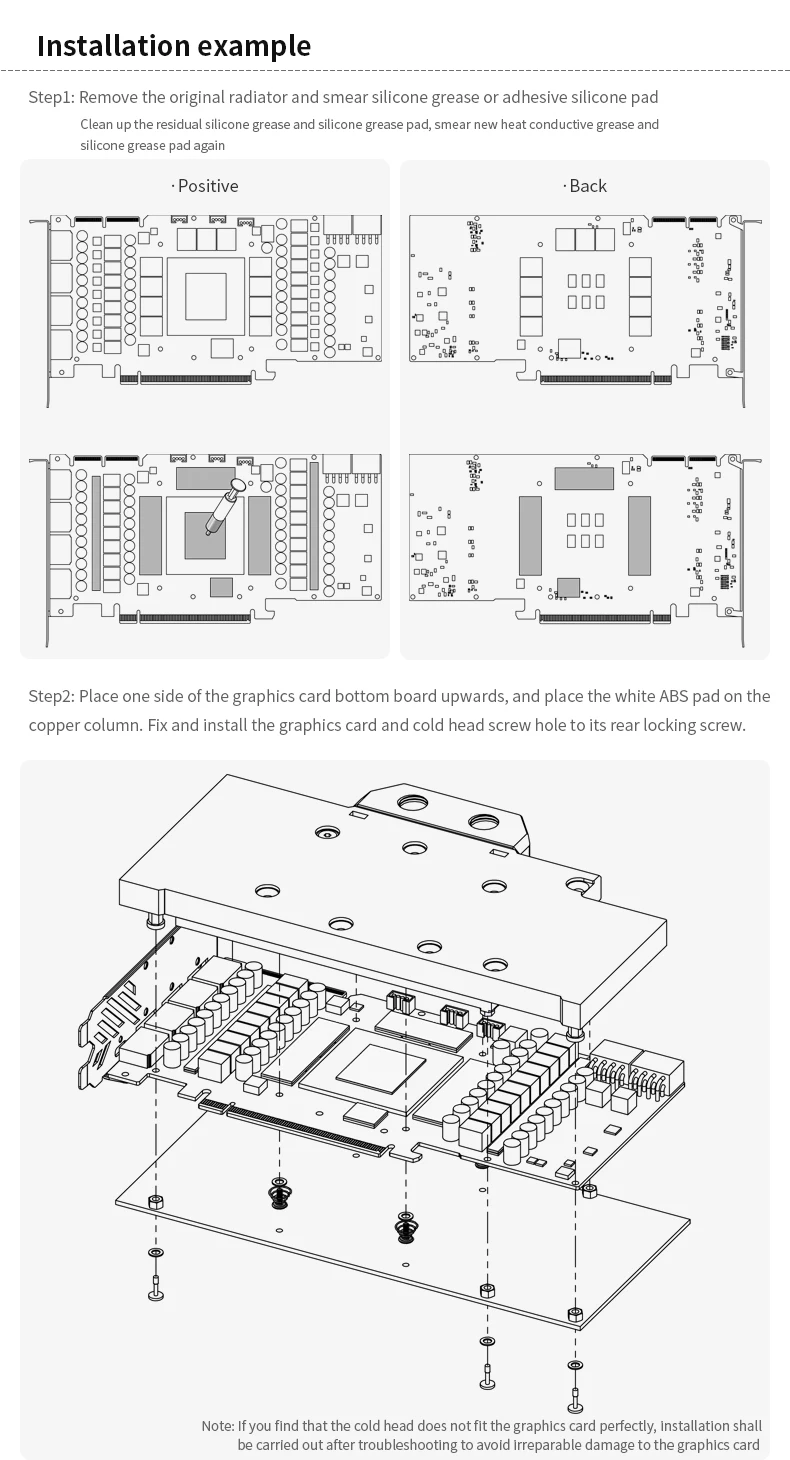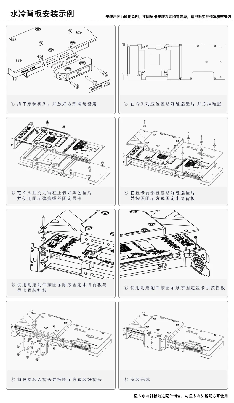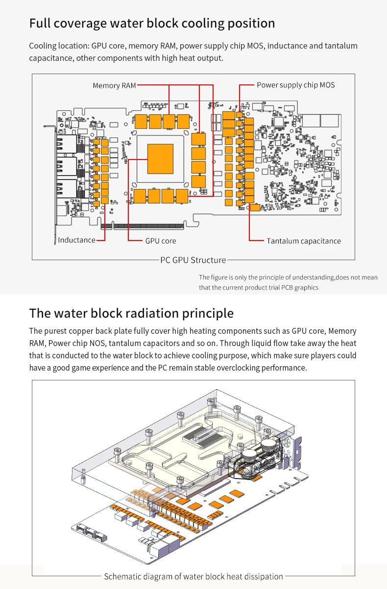 3.The graphics card water-cooled backplane is only suitable for graphics cards whose PCB is double-sided video memory to dissipate heat.