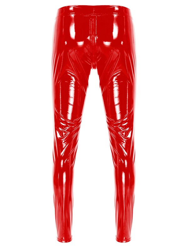 Mens Two-way Zipper Crotch Trousers Patent Leather Skinny Pants.