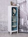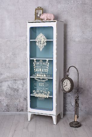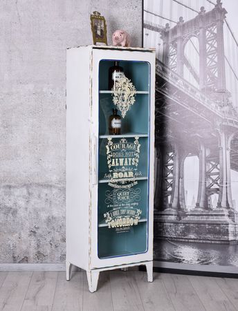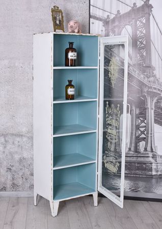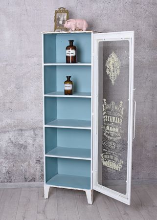 Al combinar metal estable y vidrio transparente El armario parece abierto y aireado, mientras que el aspecto nostálgico revive el encanto de los tiempos pasados. Ya sea como Gabinete farmacéutico, show loft, este mueble se ajusta sin esfuerzo a los conceptos de vida modernos y clásicos.