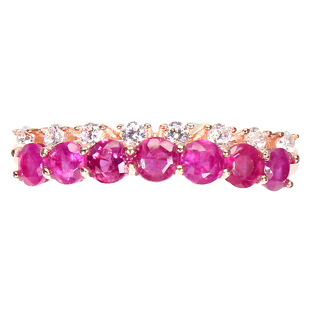 Round Red Ruby 3mm White Cz 14K Rose Gold Plate 925 Sterling Silver Ring