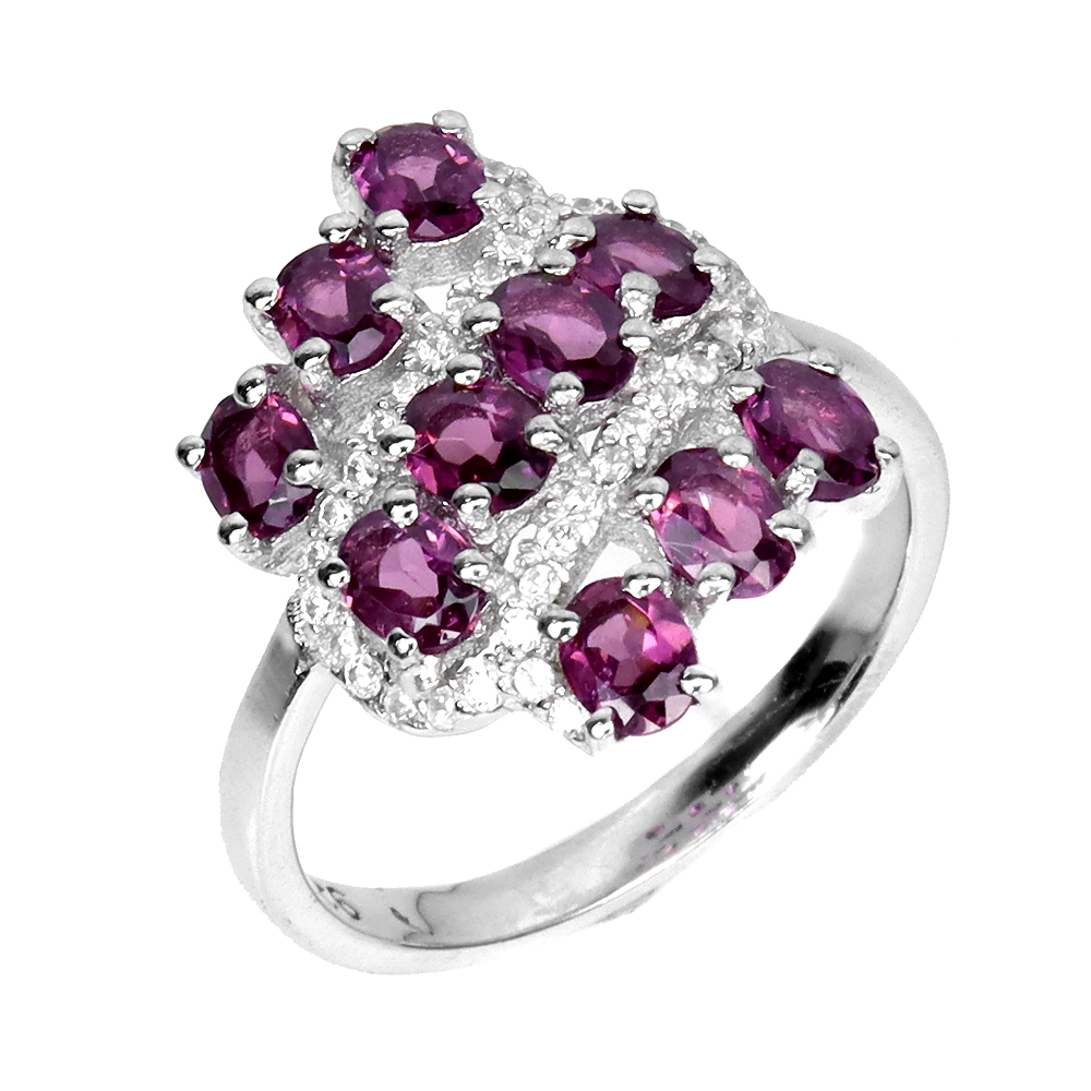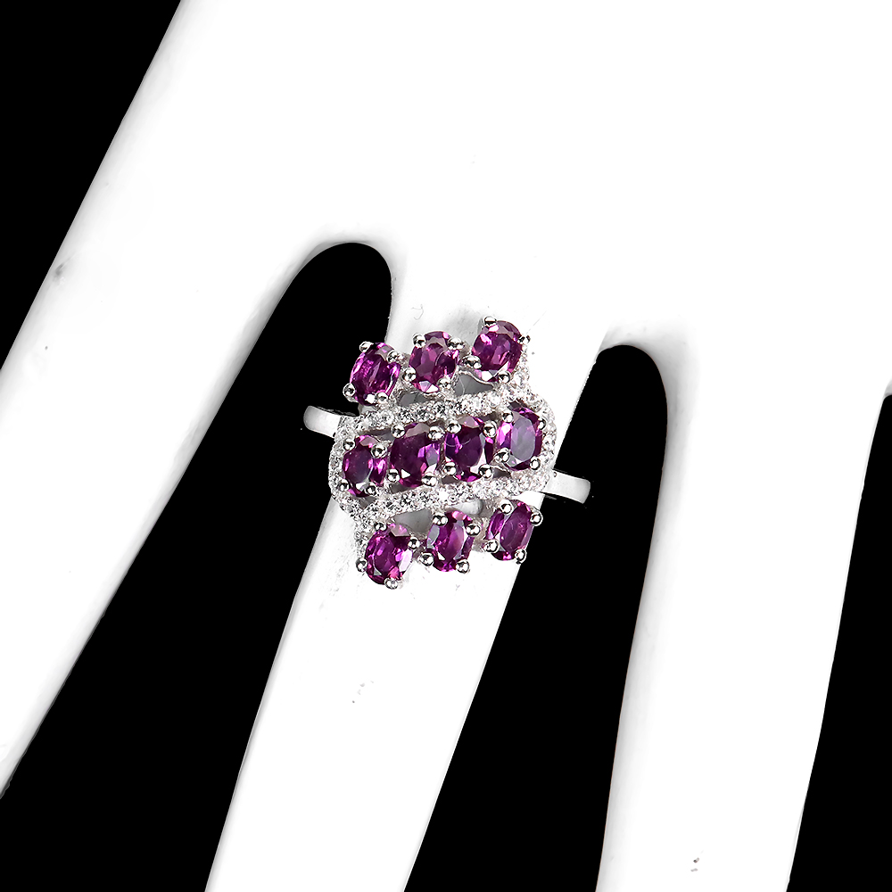 Unheated Oval Rhodolite 4x3mm Cz 14K White Gold Plate 925 Sterling Silver Ring