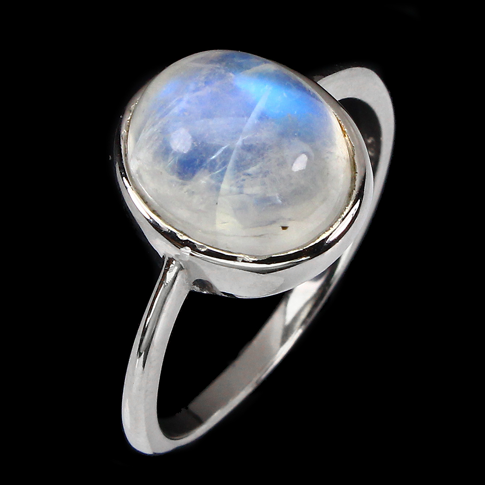 Unheated Oval Moonstone 11x9mm 14K White Gold Plate 925 Sterling Silver Ring 6