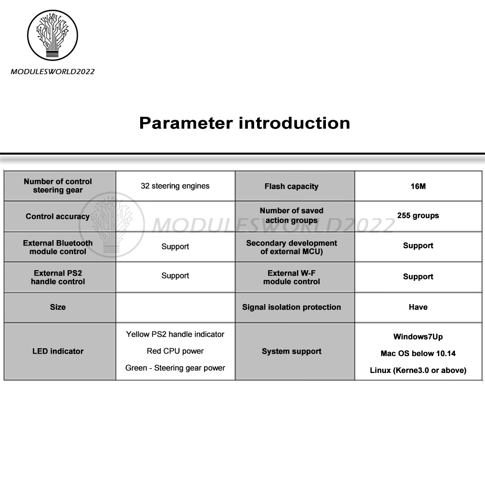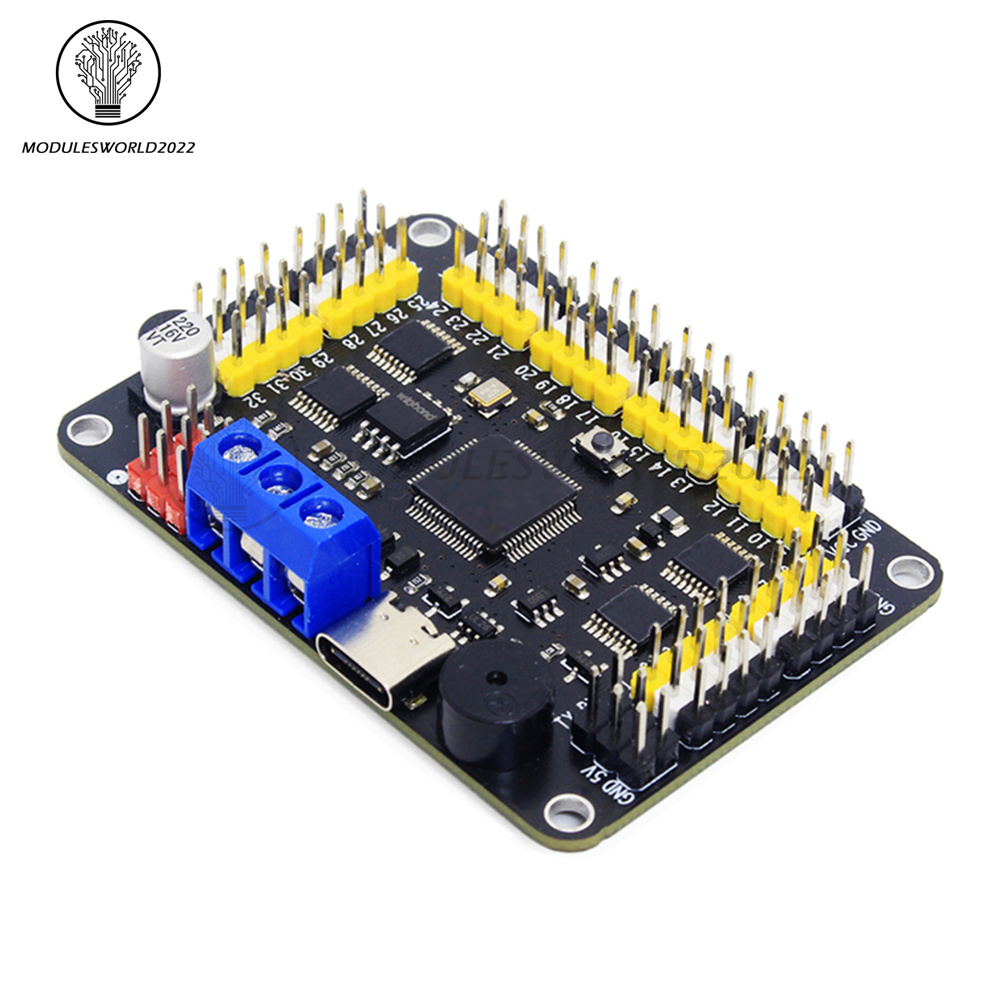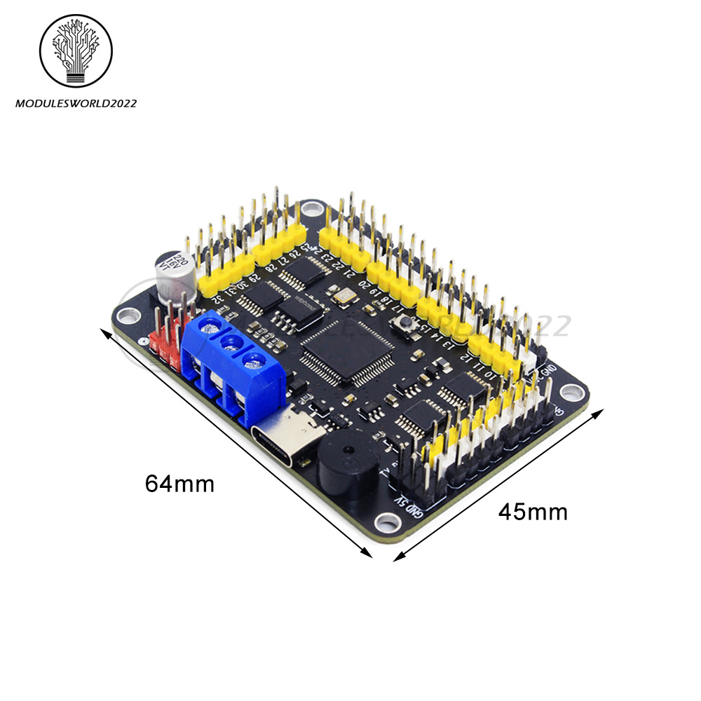 Servo interface: brightly coloured wiring, up to 32 servos can be controlled at the same time, high precision servo control, smooth operation, servo operation speed can be set