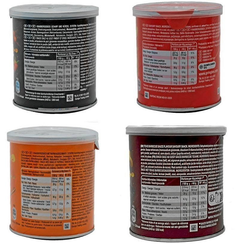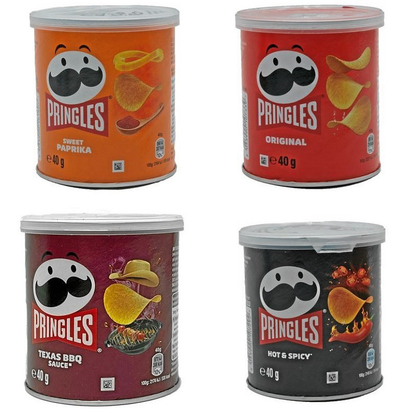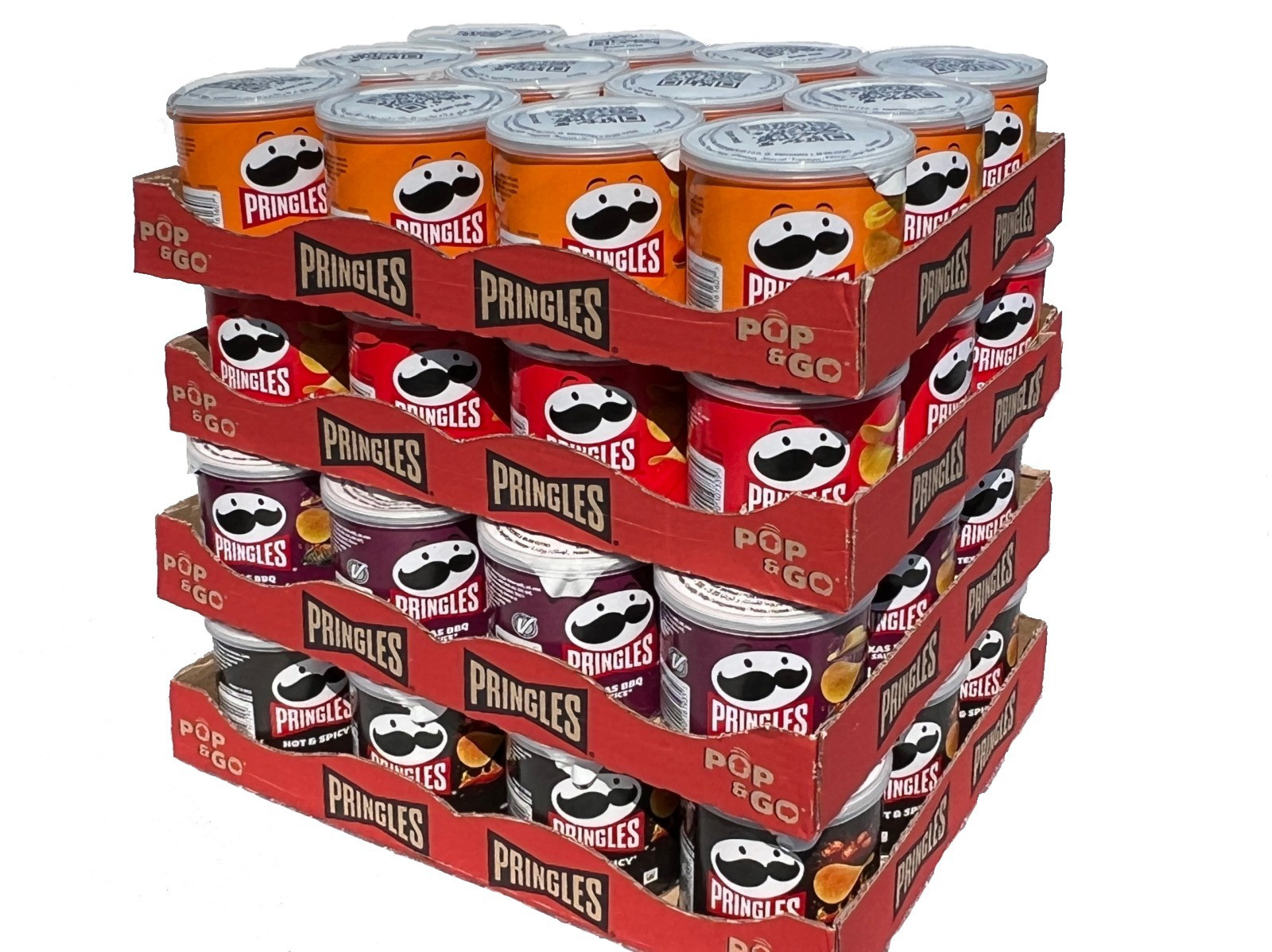 Also 4 x 12 Pringles à 40 g. Je ein 12er Paket von jeder Sorte.