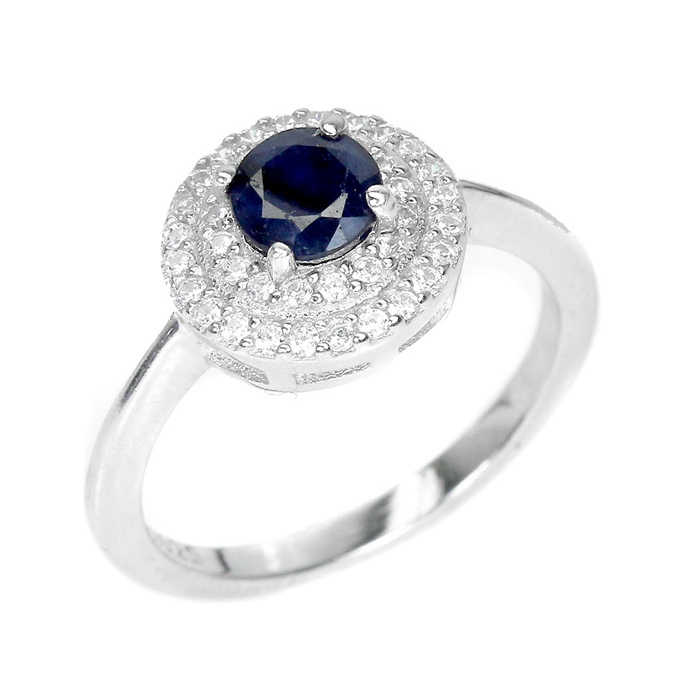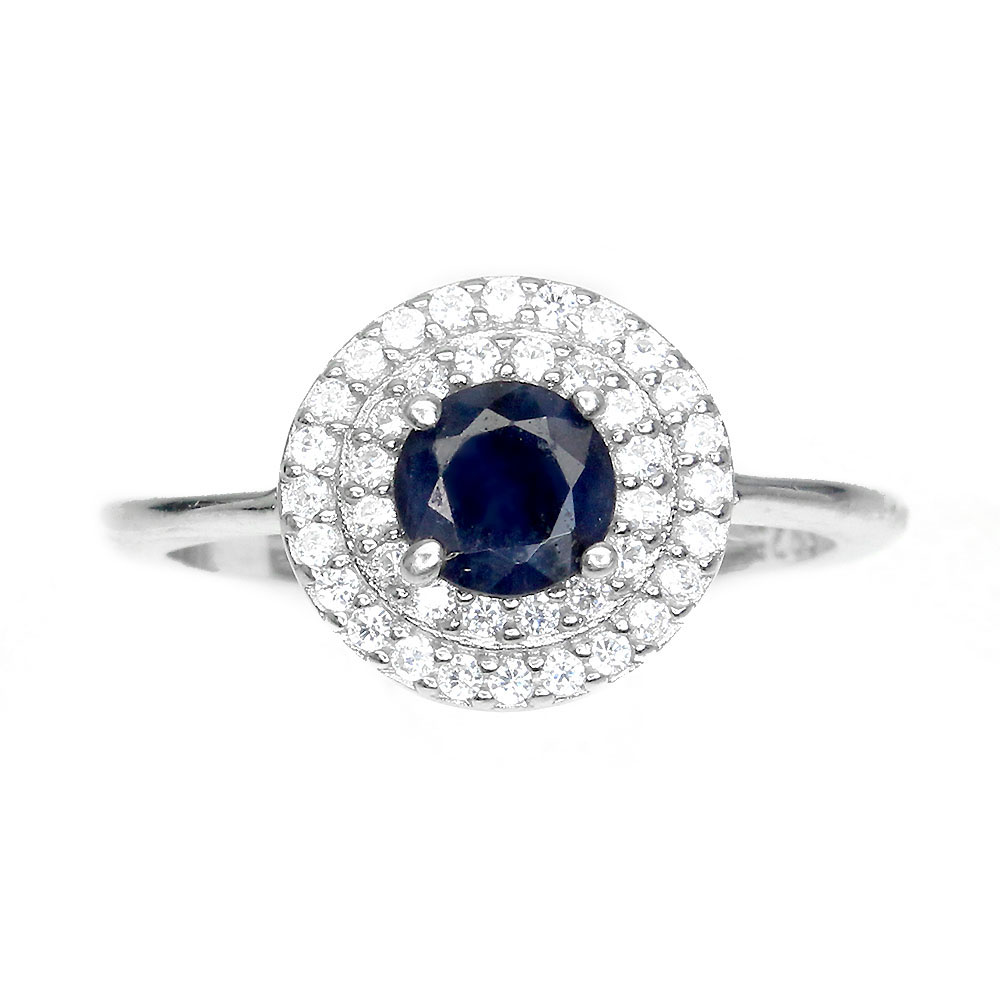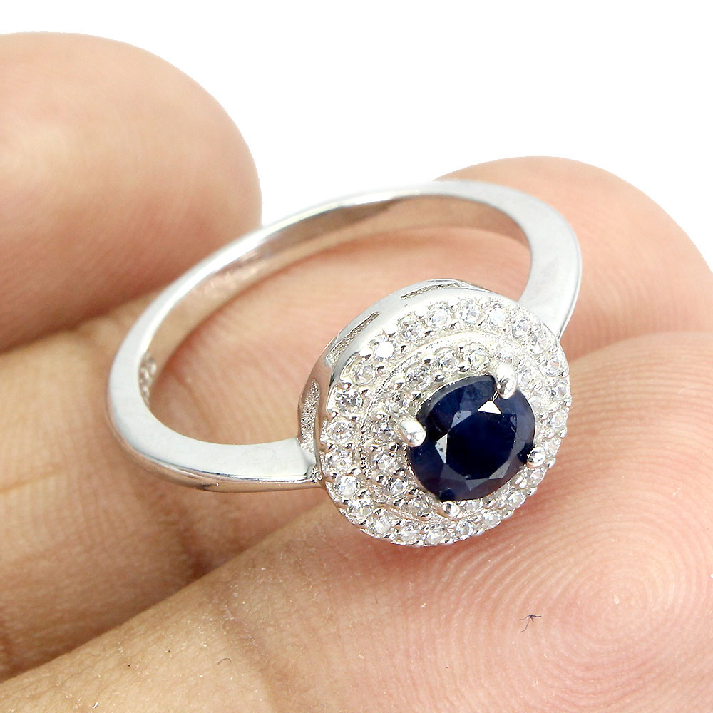 Diffused Round Blue Sapphire 5mm Simulated Cz 925 Sterling Silver Ring Size 6