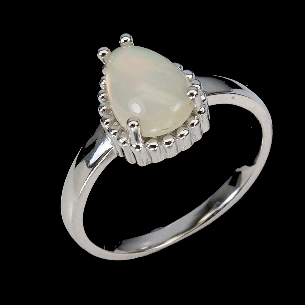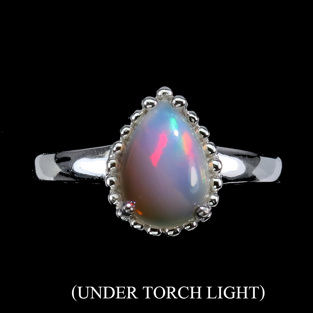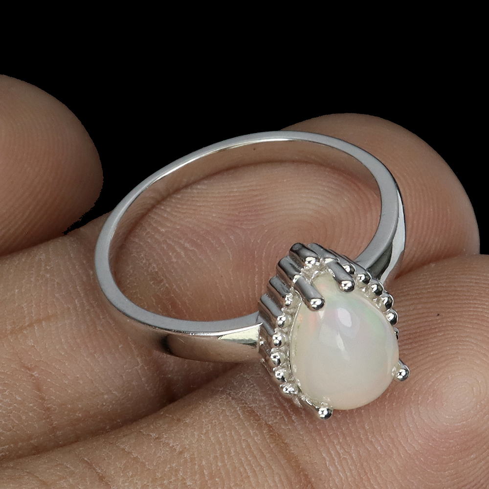 Unheated Pear Fire Opal Rainbow Full Flash 10x7mm 925 Sterling Silver Ring Size 8