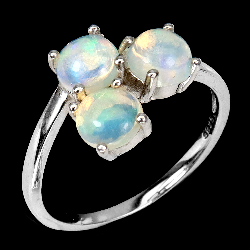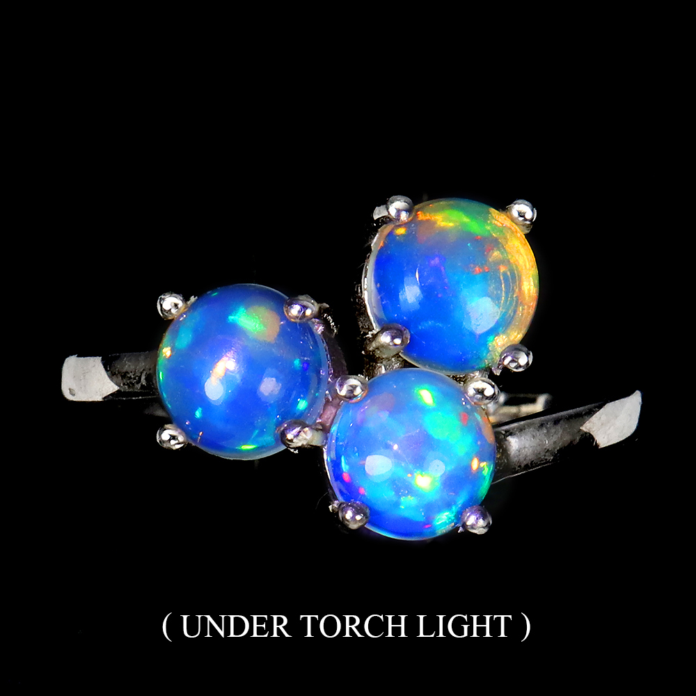 Unheated Round Fire Opal Rainbow Full Flash 6mm 925 Sterling Silver Ring Size 7