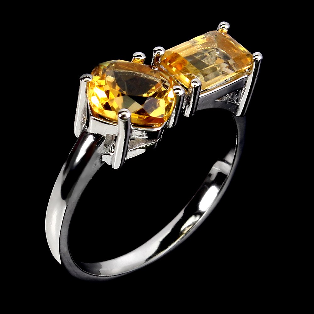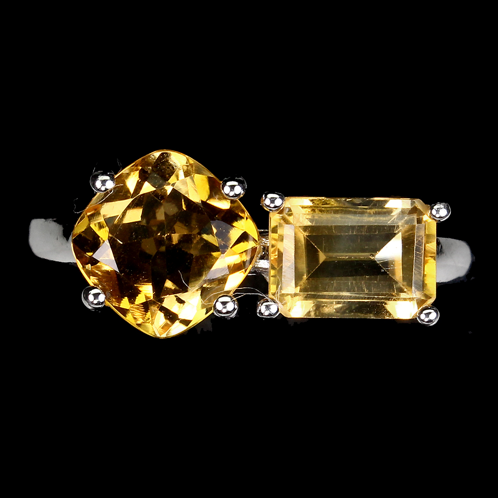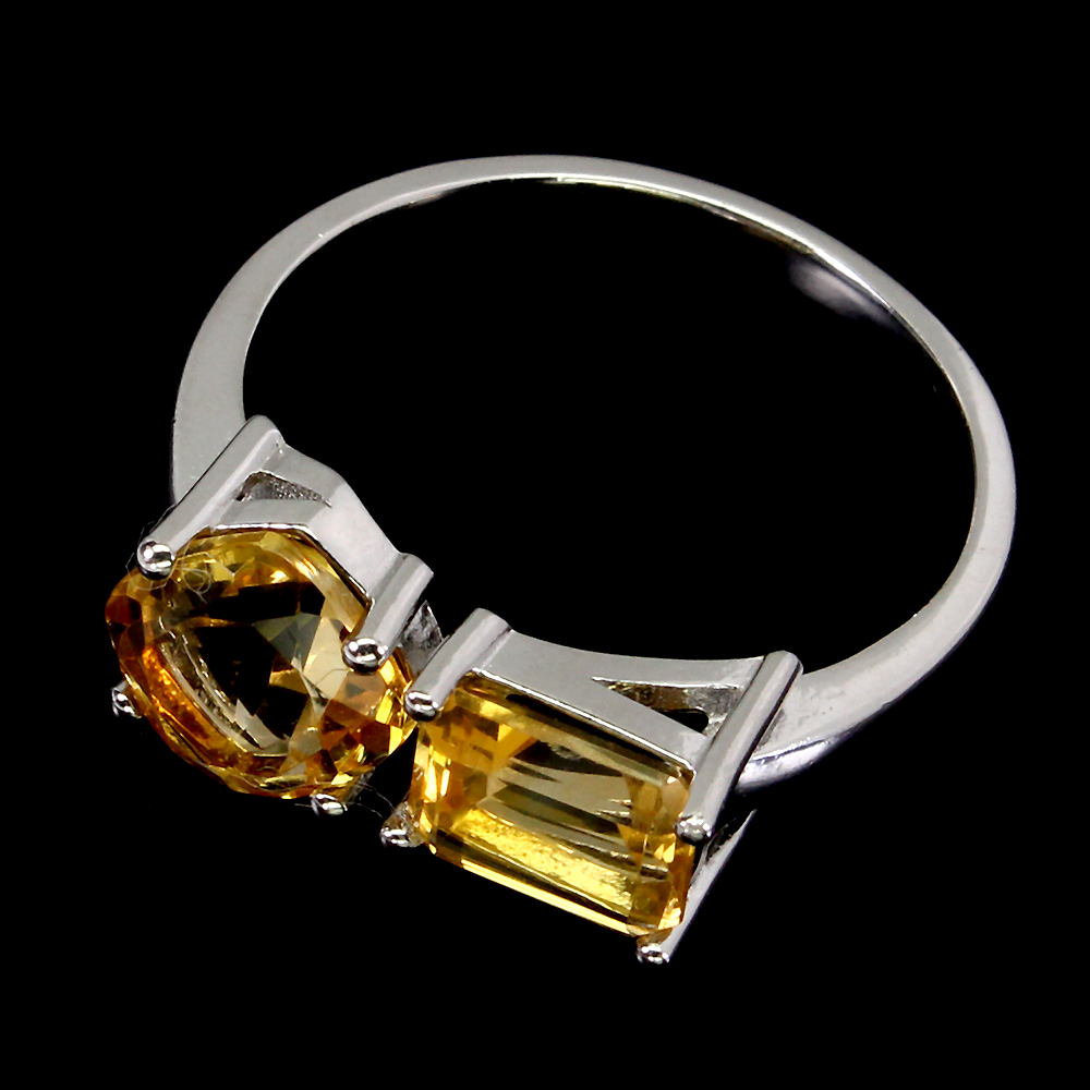 Unheated Cushion Citrine 7mm 14K White Gold Plate 925 Sterling Silver Ring 8