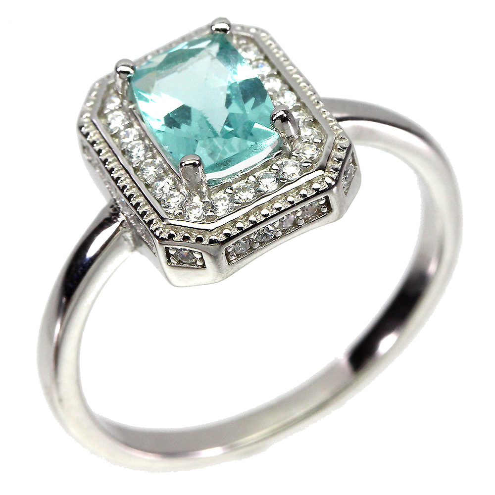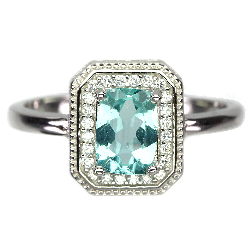 Unheated Antique Blue Apatite 7x5mm Simulated Cz 925 Sterling Silver Ring Size 7