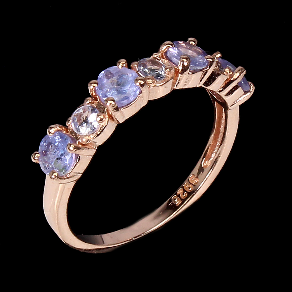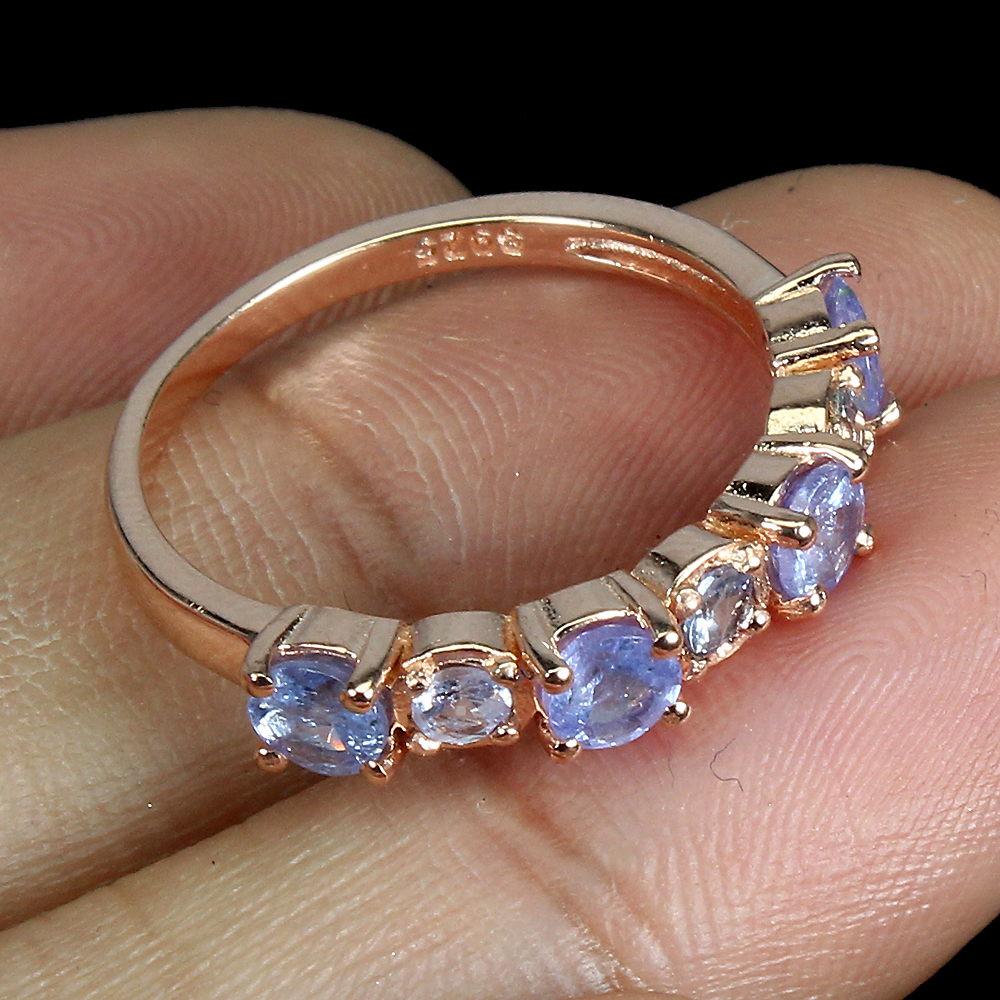 Unheated Round Blue Tanzanite 4mm 14K Rose Gold Plate 925 Sterling Silver Ring