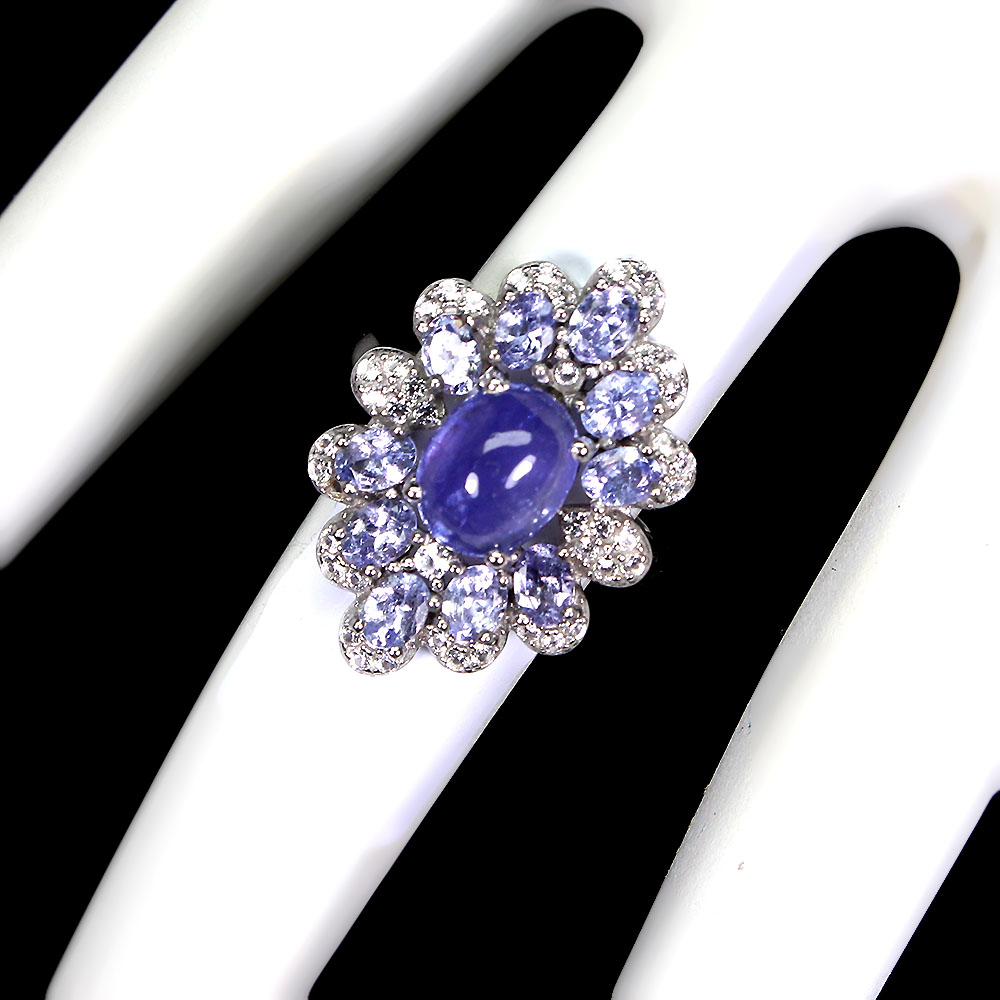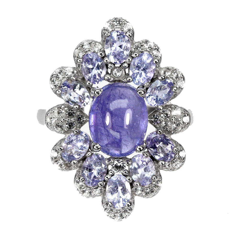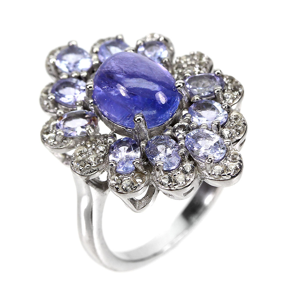 Unheated Oval Blue Tanzanite 9x7mm White Topaz 925 Sterling Silver Ring Size 6