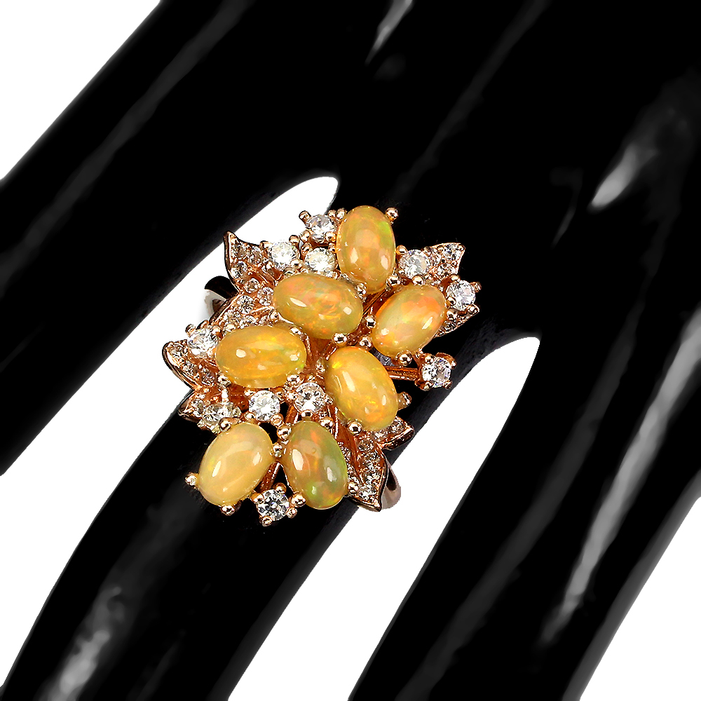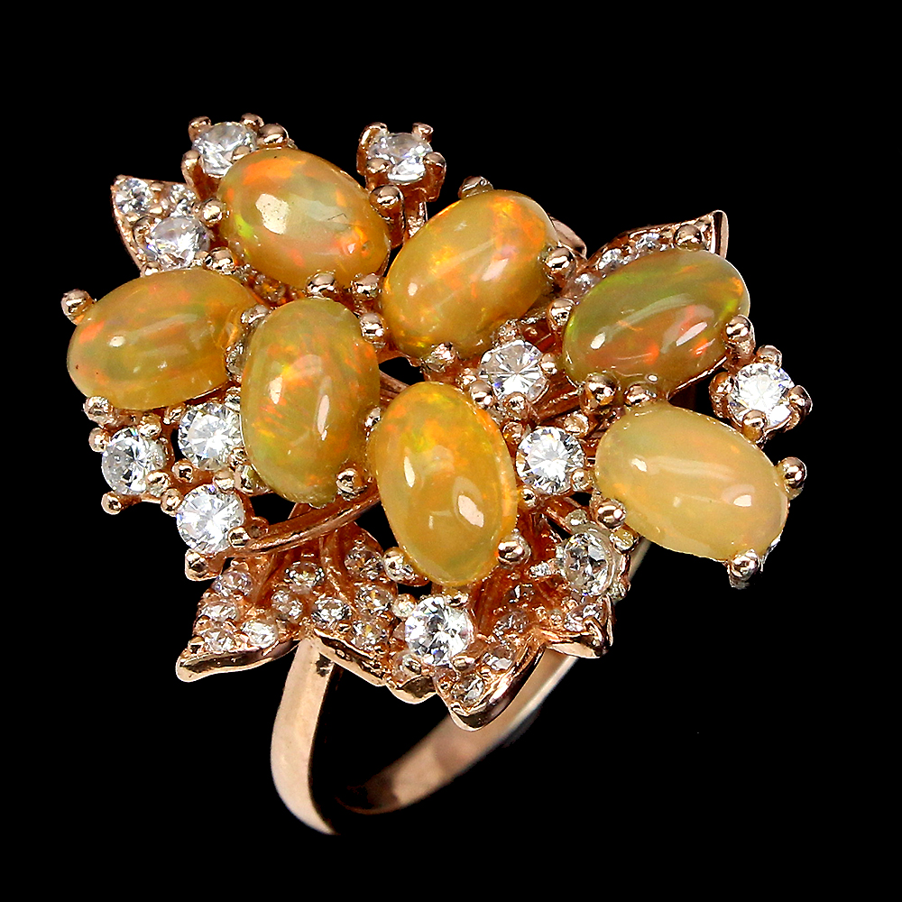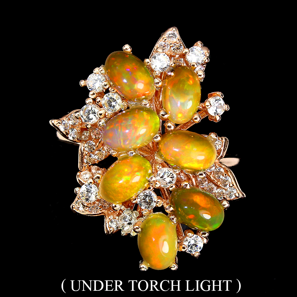 Unheated Oval Fire Opal Rainbow Full Fash 6x4mm Cz 925 Sterling Silver Ring Sz 8