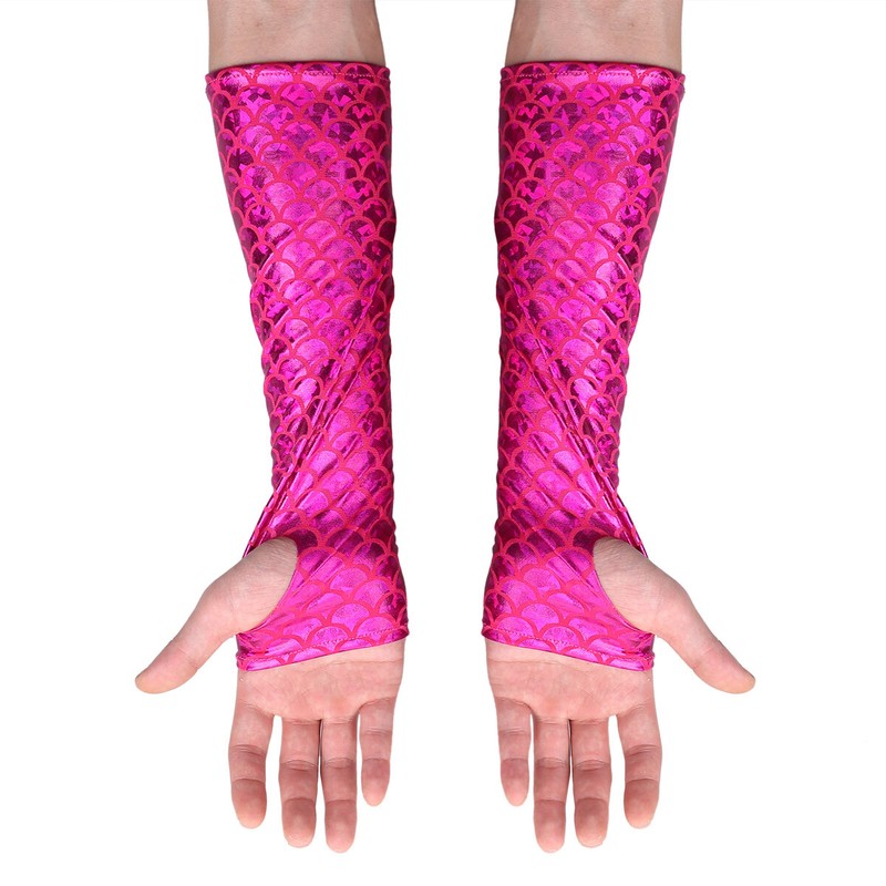 1 Pair Mermaid Scale Pattern Printed Fingerless Gloves.