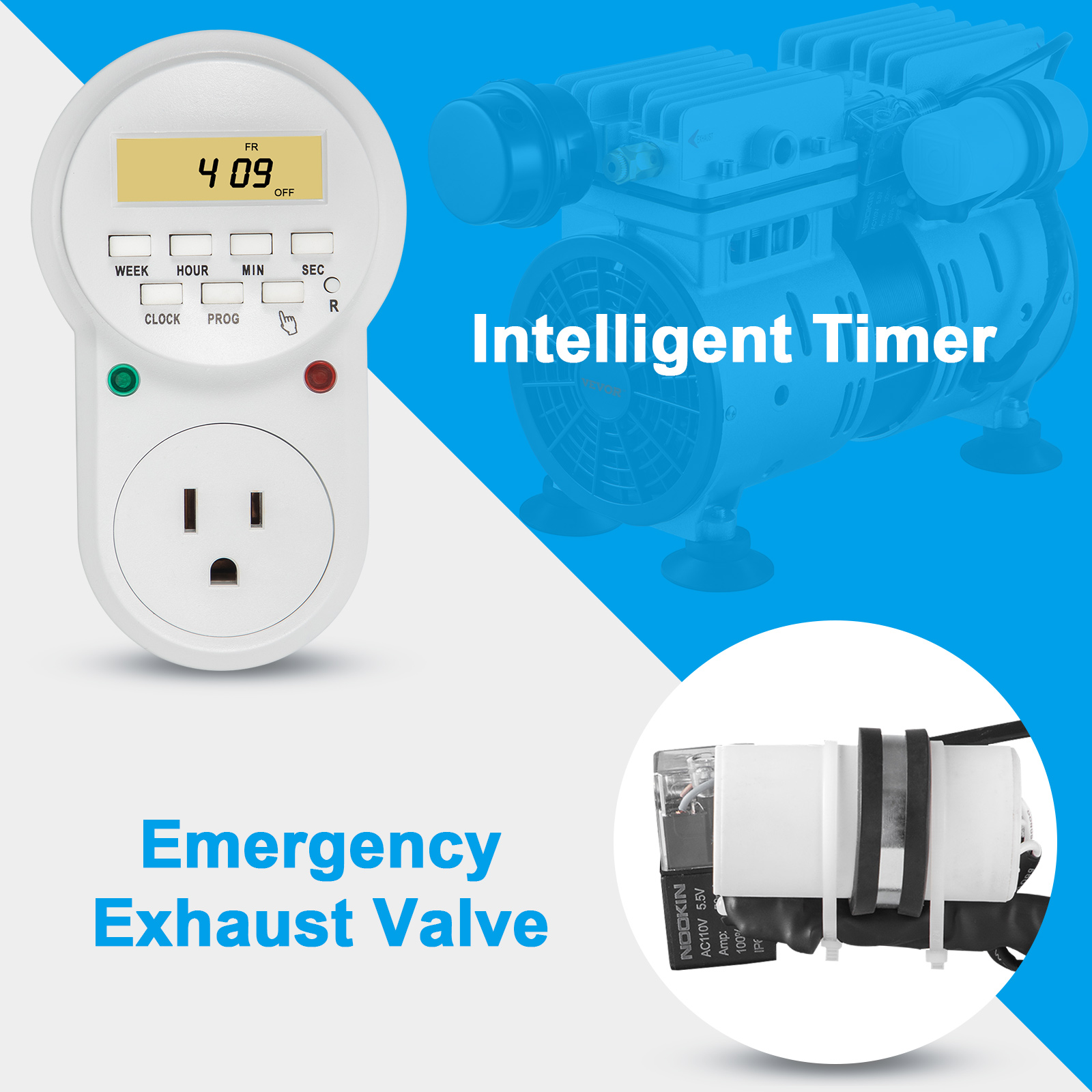 This pond aeration system comes with a timer and a safety valve, preventing the motor from overheating and prolonging the service life. And the timer saves energy.