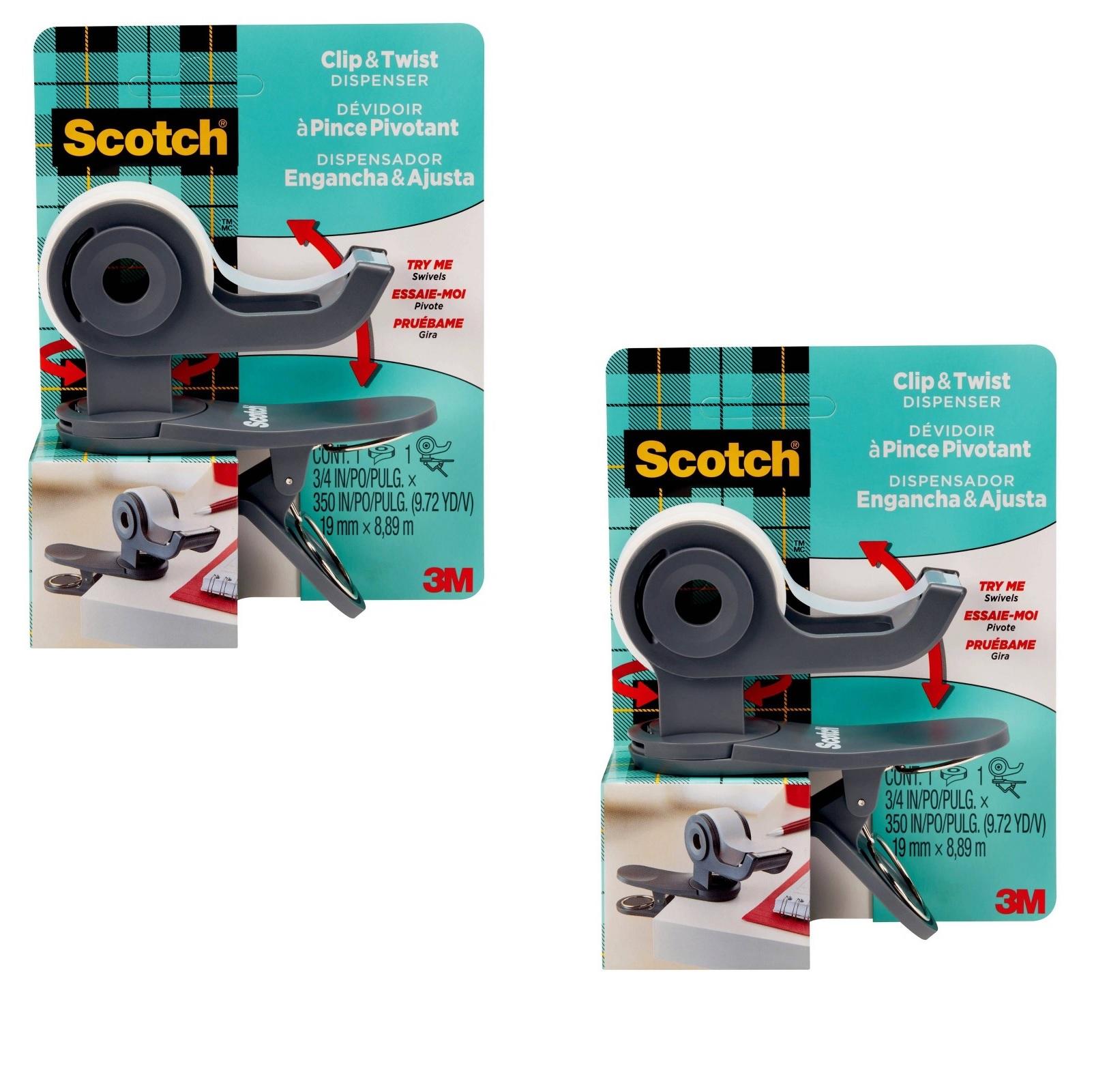 The Scotch™ Clip and Twist dispenser is unlike any other tape dispenser because it operates in the round and with on the go portability. With its dual rotation engineering, one handed taping can be done at almost any angle. Clip it wherever you need it, then simply twist it 360 degrees for horizontal surfaces or vertically 180 degrees when clipped to vertical surfaces up to 1 1/4” thick. Be it tables, desks, monitor stands or cubicle walls– you can feel prepared to wrap, repair, create and more with just a twist of the wrist. Refillable with Scotch Brand ¾ inch tapes, the Scotch™ Clip and Twist Dispenser is the tape dispensing solution that saves on space, so you can focus on projects at hand. Whether at your desk or on the go, just clip. Twist. Tape! - Easy-to-use clip allows for on-the-go portability - Includes one roll of 3/4" x 350" roll of Scotch Magic™ Tape - Easy to refill with your favorite 3/4" width Scotch Brand tape Gender: unisex.