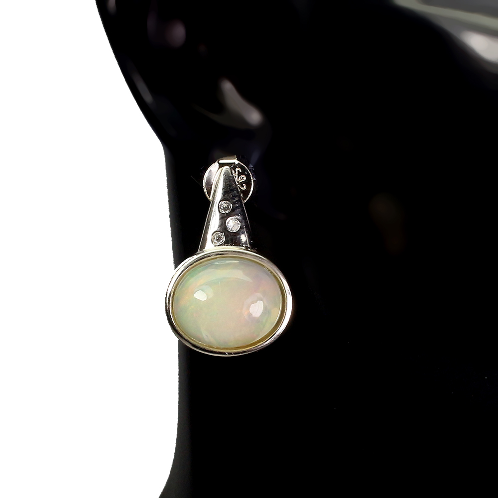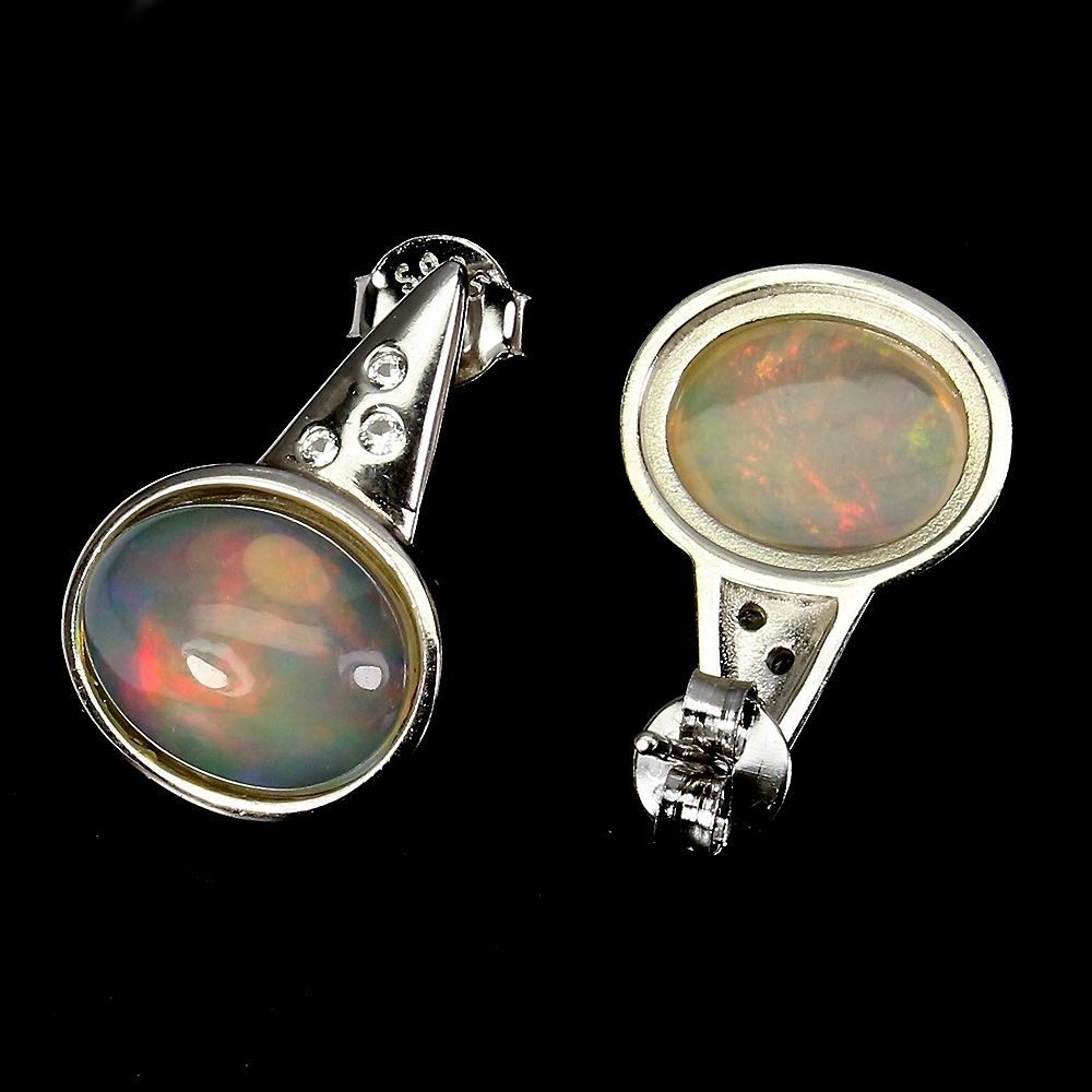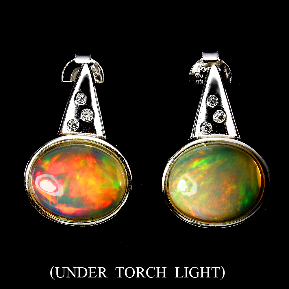 Unheated Oval Fire Opal Rainbow 11x9mm White Topaz 925 Sterling Silver Earrings