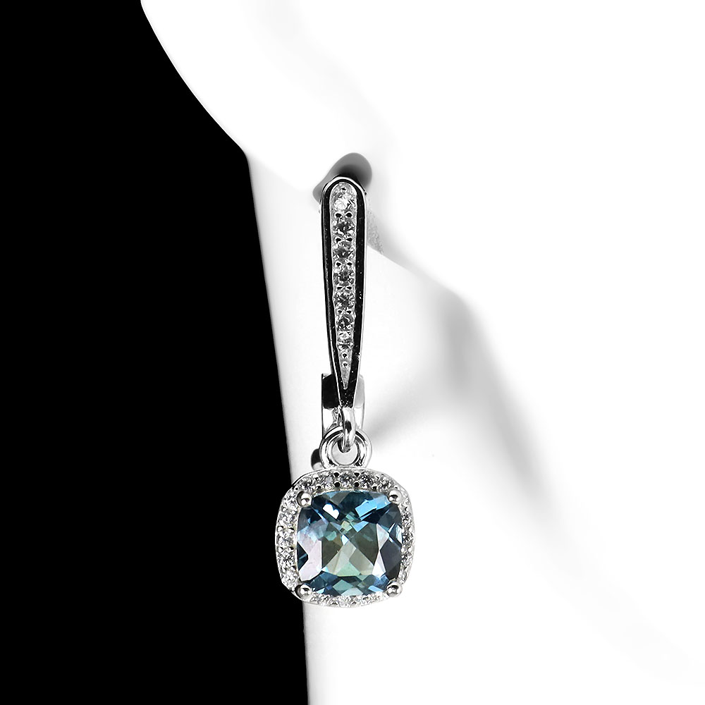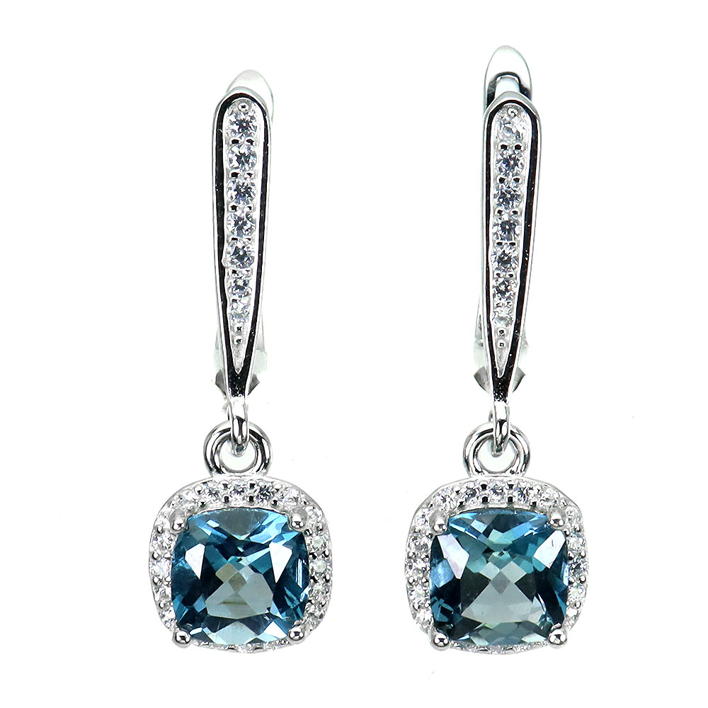 Irradiated London Blue Topaz 6mm Simulated Cz 925 Sterling Silver Earrings