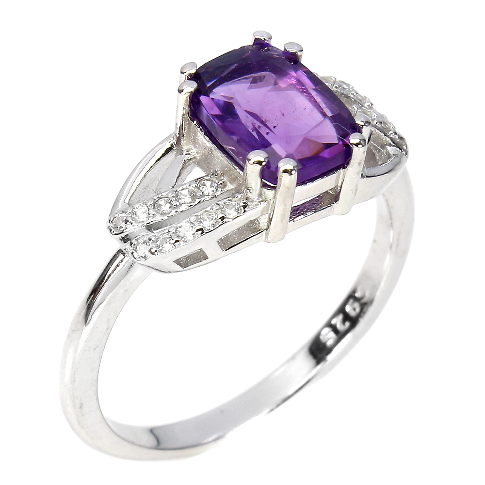 Unheated Oval Amethyst 8x6mm Cz White Gold Plate 925 Sterling Silver Ring 7.5