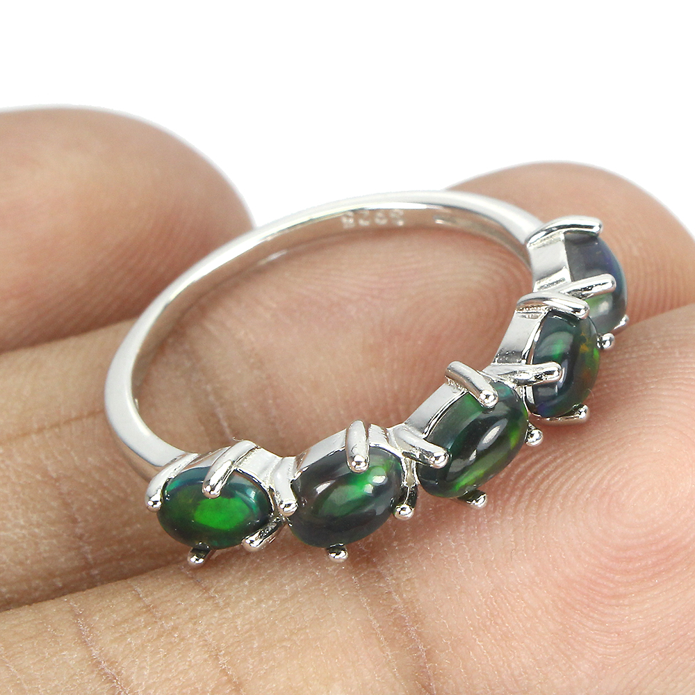 Clarity Enhanced Oval Black Opal Rainbow 6x4mm 925 Sterling Silver Ring 9.5